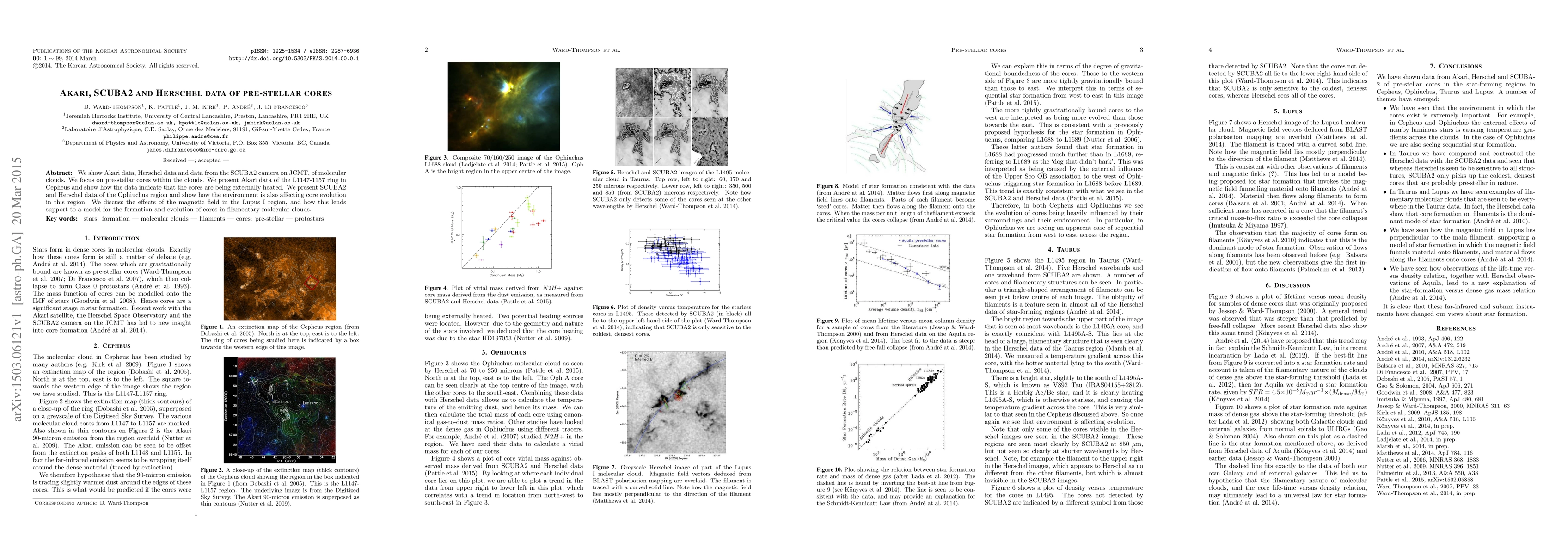 We show Akari data, Herschel data and data from the SCUBA2 camera on JCMT, of molecular clouds. We focus on pre-stellar cores within the clouds. We present Akari data of the L1147-1157 ring in Cepheus and show how the data indicate that the cores are being externally heated. We present SCUBA2 and Herschel data of the Ophiuchus region and show how the environment is also affecting core evolution in this region. We discuss the effects of the magnetic field in the Lupus I region, and how this lends support to a model for the formation and evolution of cores in filamentary molecular clouds.
