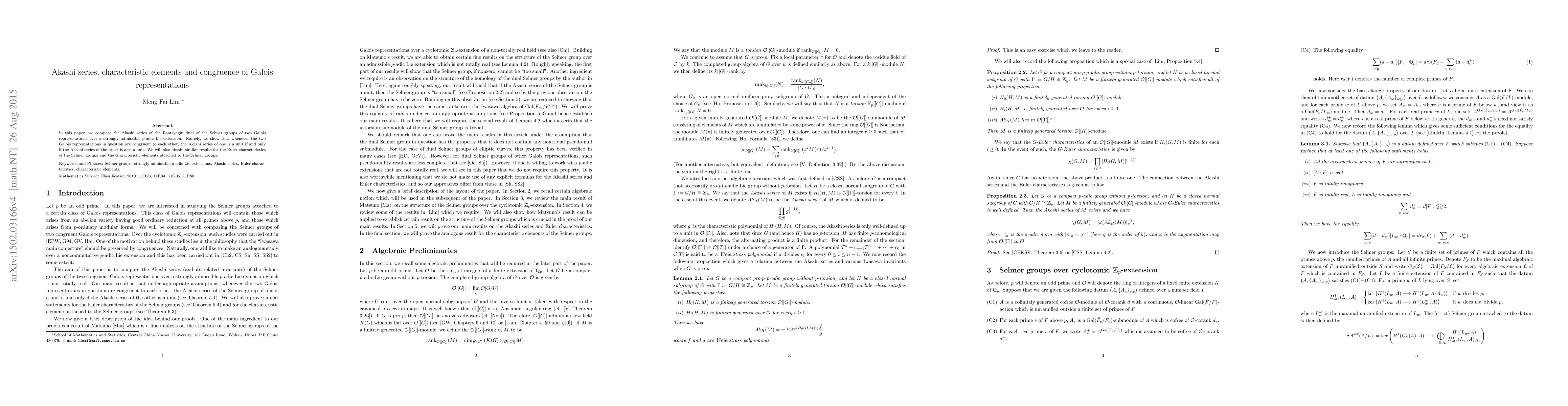 This paper shows that when two Galois representations over a p-adic Lie extension are congruent, their Akashi series are units if and only if they are identical.