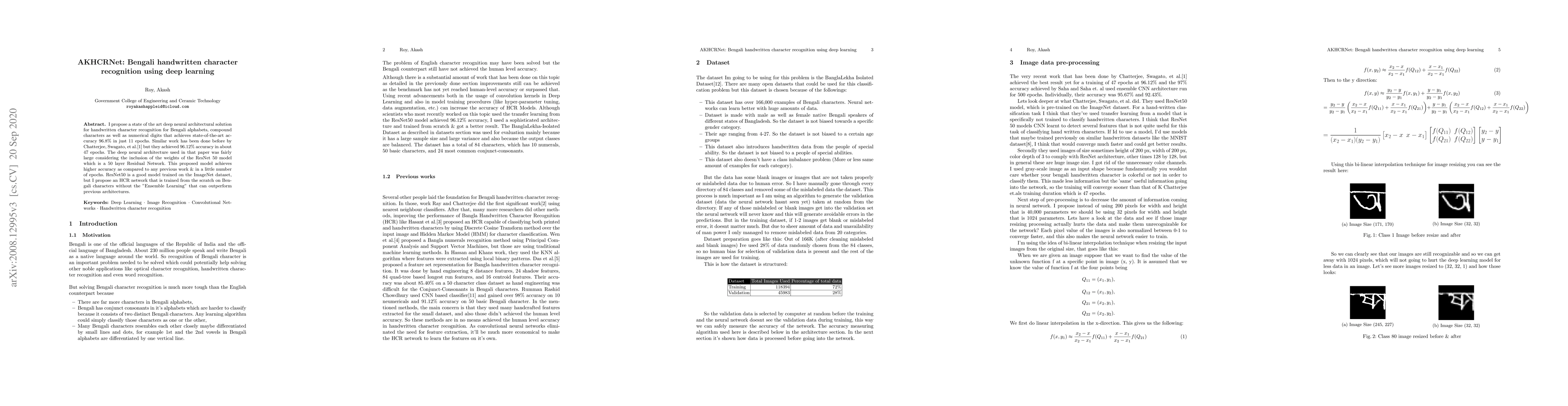 This paper introduces AKHCRNet, a deep learning model for recognizing Bengali handwritten characters and digits, achieving 96.8% accuracy in just 11 epochs, surpassing previous models that required 47 epochs. Unlike prior work, this model is trained from scratch on Bengali characters without using ensemble learning or large pre-trained networks like ResNet50.