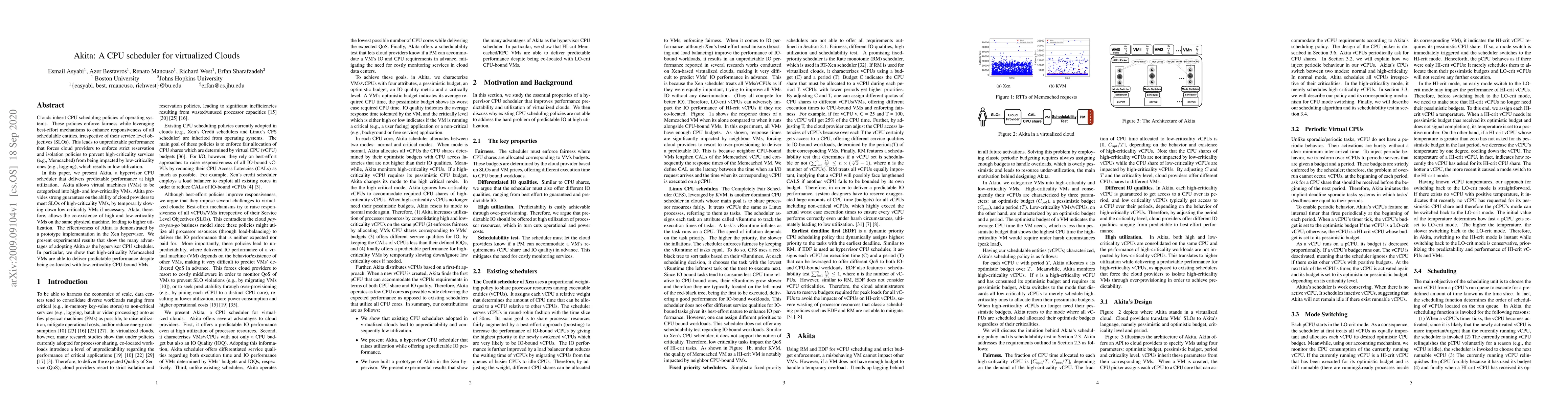 Akita, a hypervisor CPU scheduler, enables cloud providers to meet high-criticality service level objectives while maximizing utilization by prioritizing high-priority VMs over low-priority ones.