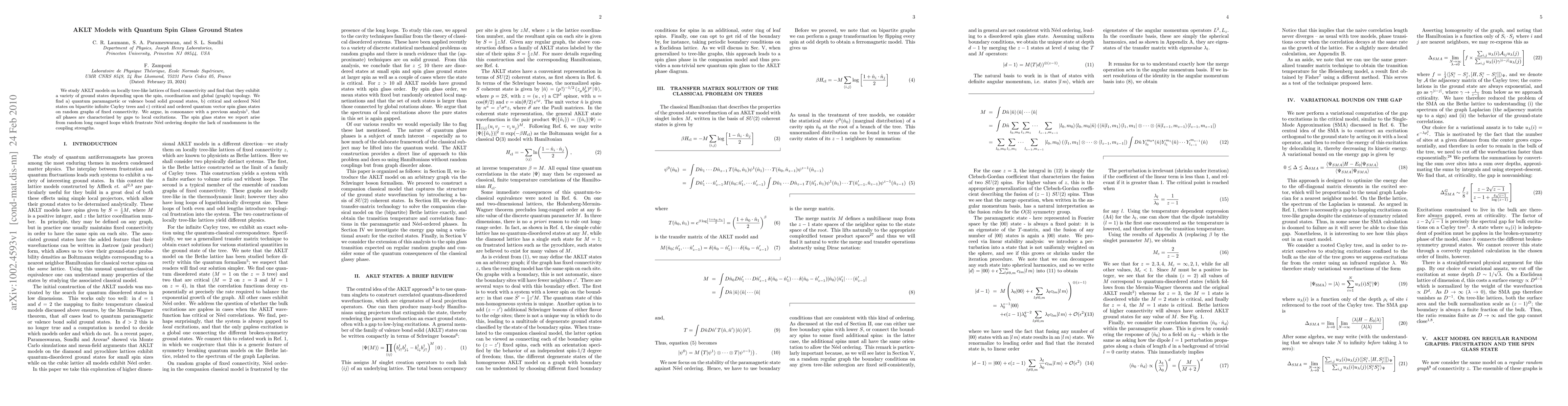We study AKLT models on locally tree-like lattices of fixed connectivity and find that they exhibit a variety of ground states depending upon the spin, coordination and global (graph) topology. We find a) quantum paramagnetic or valence bond solid ground states, b) critical and ordered N\'eel states on bipartite infinite Cayley trees and c) critical and ordered quantum vector spin glass states on random graphs of fixed connectivity. We argue, in consonance with a previous analysis, that all phases are characterized by gaps to local excitations. The spin glass states we report arise from random long ranged loops which frustrate N\'eel ordering despite the lack of randomness in the coupling strengths.