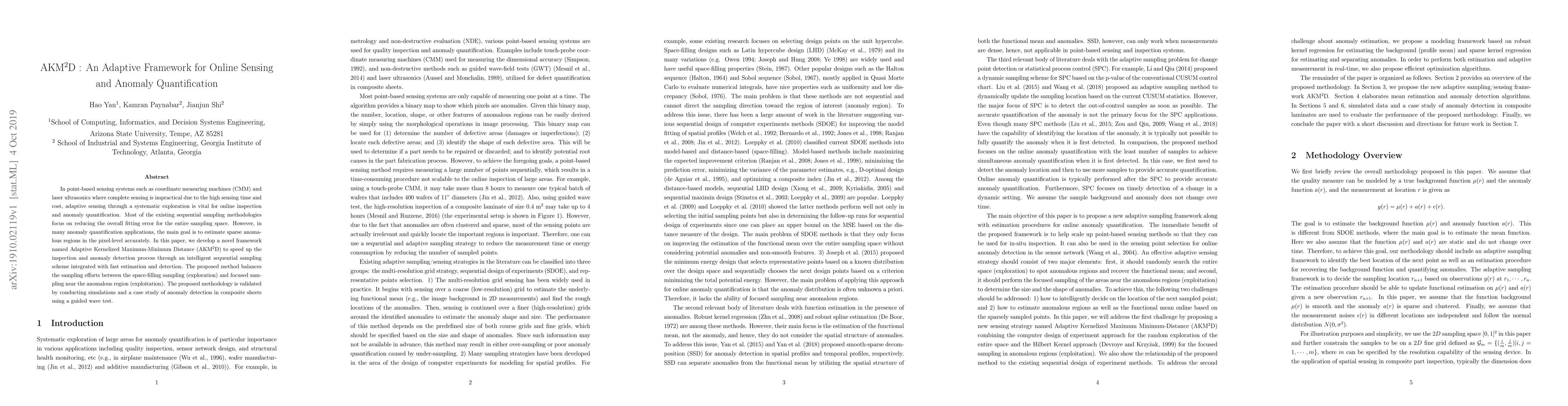 Title: AKM$^2$D: An Adaptive Framework for Online Sensing and Anomaly Quantification Summary: This paper introduces AKM$^2$D, an adaptive framework that combines exploration and exploitation strategies for efficient online inspection and precise anomaly detection in high-cost sensing systems, validated through simulations and practical applications in composite sheet testing.