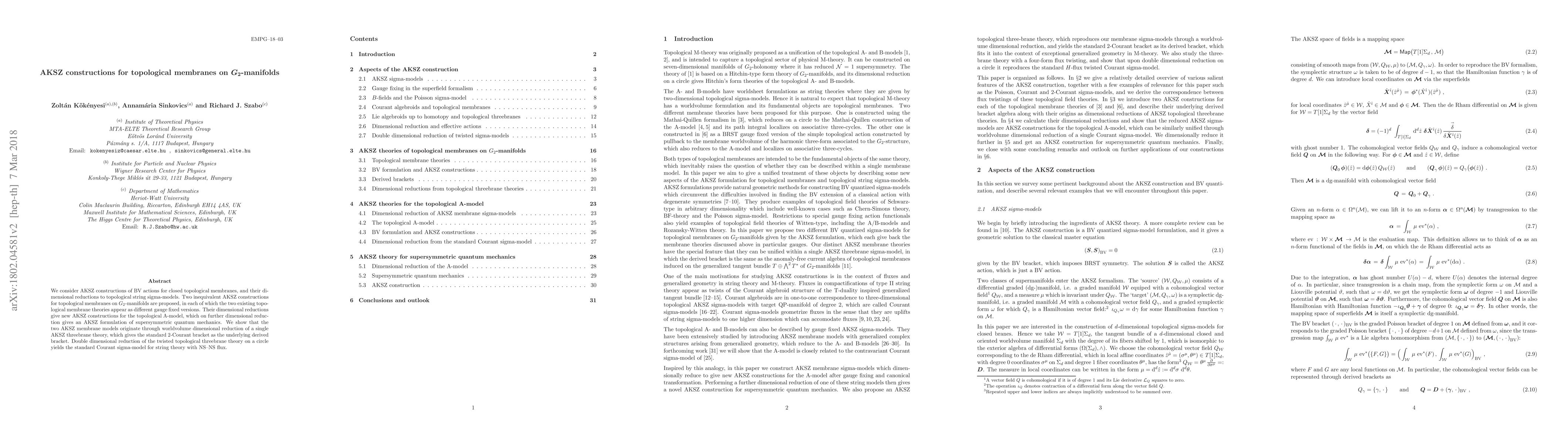 This paper proposes two AKSZ constructions for topological membranes on $G_2$-manifolds, showing how they relate to dimensional reductions of a single AKSZ threebrane theory. The study reveals new AKSZ constructions for the topological A-model and ultimately leads to an AKSZ formulation of supersymmetric quantum mechanics.