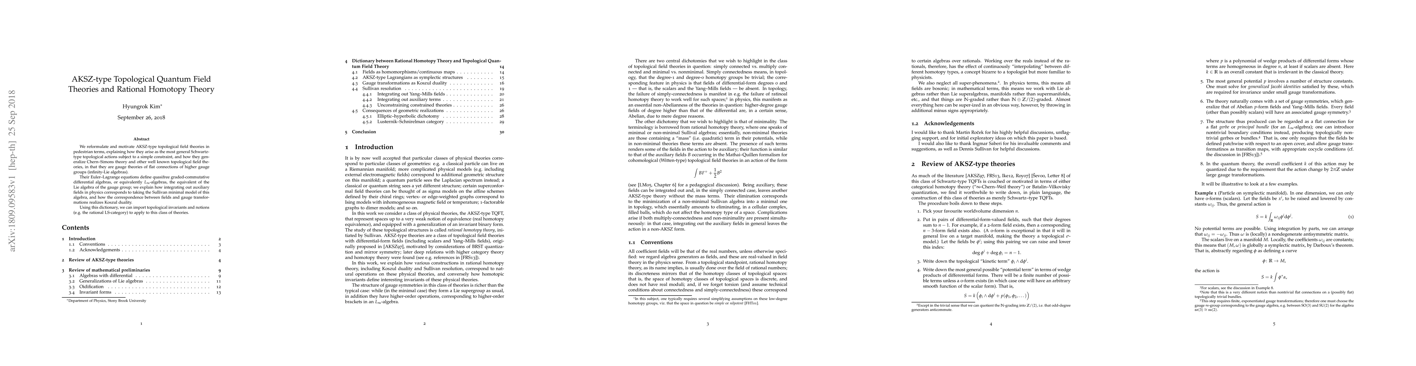 This paper reformulates AKSZ-type topological quantum field theories, showing they generalize Chern-Simons theory through gauge theories of flat connections in higher gauge groups. It connects the Euler-Lagrange equations to $L_\infty$-algebras, illustrating how integrating auxiliary fields corresponds to the Sullivan minimal model, and uses Koszul duality to relate fields and gauge transformations.
