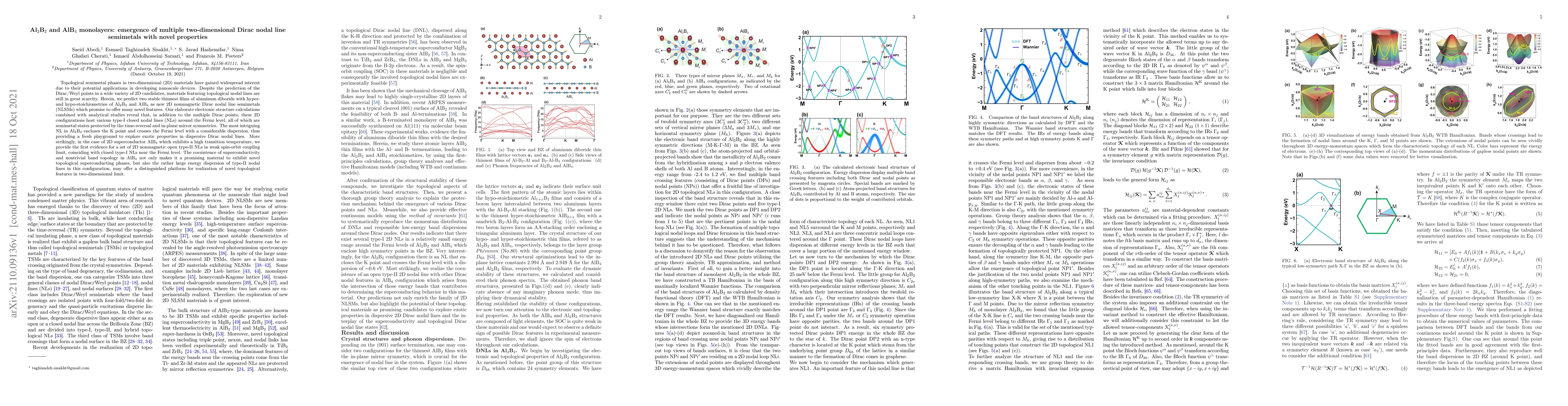 This research predicts two new aluminum diboride monolayers, Al$_2$B$_2$ and AlB$_4$, as stable 2D nonmagnetic Dirac nodal line semimetals. These materials feature multiple Dirac points and unique type-I and type-II nodal lines, offering potential for novel topological properties and applications in nanoscale devices.