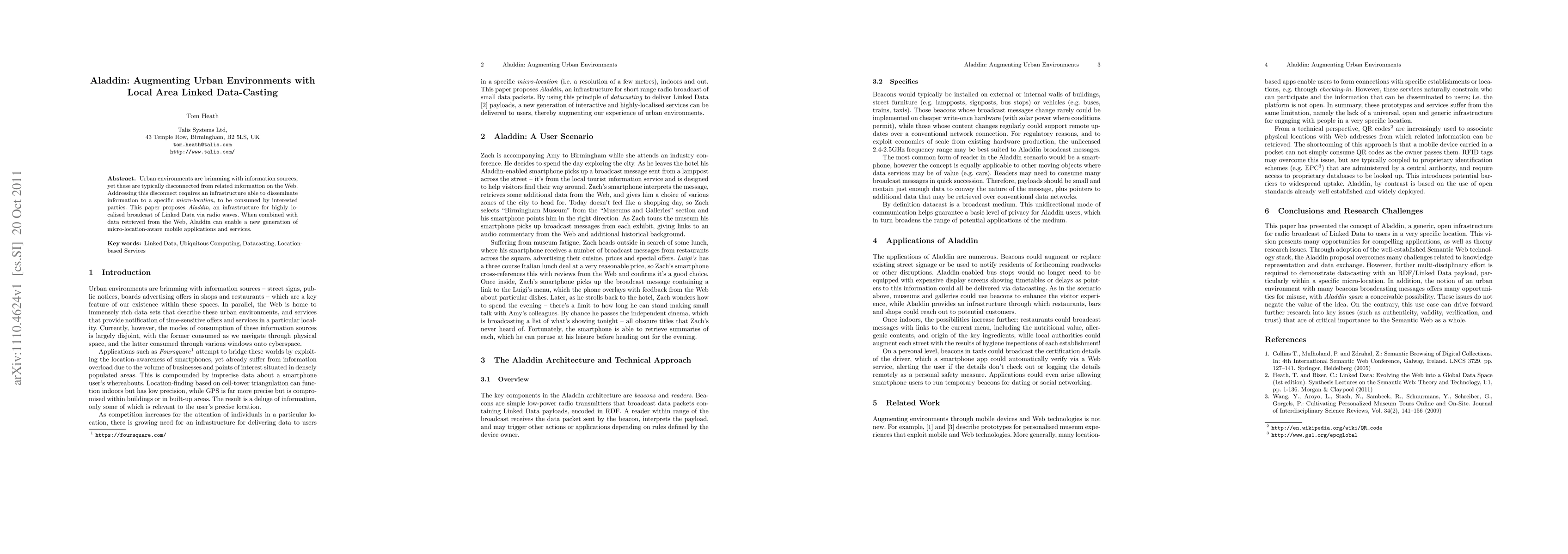 Urban environments are brimming with information sources, yet these are typically disconnected from related information on the Web. Addressing this disconnect requires an infrastructure able to disseminate information to a specific micro-location, to be consumed by interested parties. This paper proposes Aladdin, an infrastructure for highly localised broadcast of Linked Data via radio waves. When combined with data retrieved from the Web, Aladdin can enable a new generation of micro-location-aware mobile applications and services.