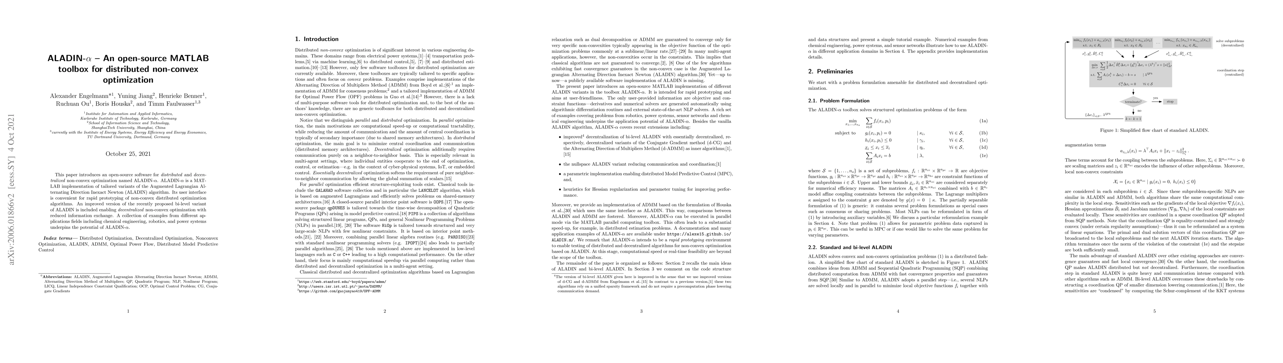 ALADIN-$\alpha$ is an open-source MATLAB toolbox for distributed non-convex optimization, implementing variants of the ALADIN algorithm for decentralized optimization with reduced information exchange. It supports rapid prototyping and includes examples from chemical engineering, robotics, and power systems.
