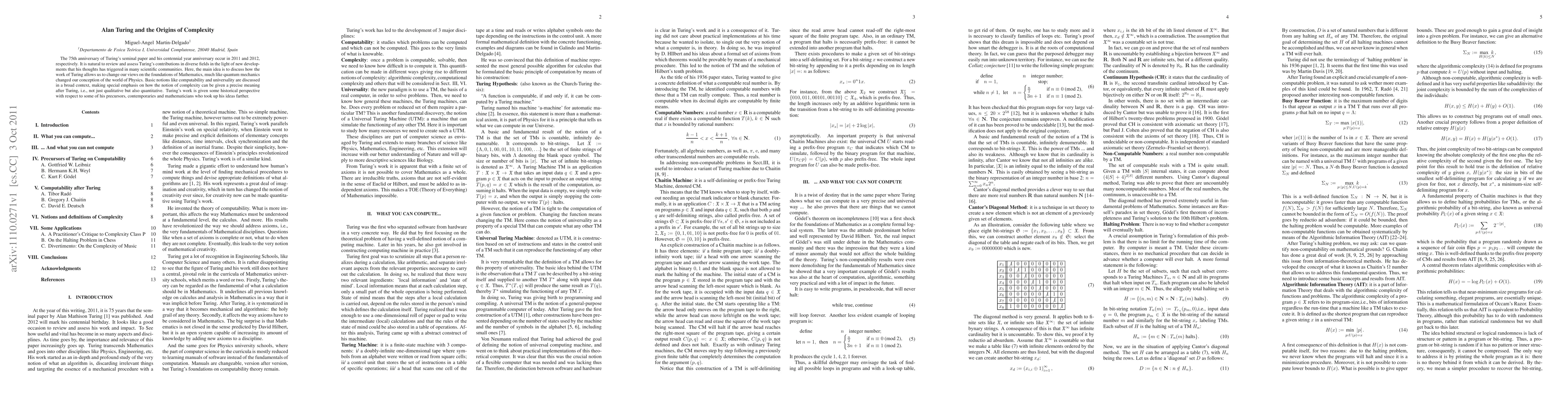 This paper reviews Alan Turing's foundational contributions to complexity theory, computability, and universality, emphasizing how his work has reshaped our understanding of mathematics and computation. It highlights the quantitative aspects of complexity that emerged from Turing's ideas and situates his work in historical context alongside other influential thinkers.