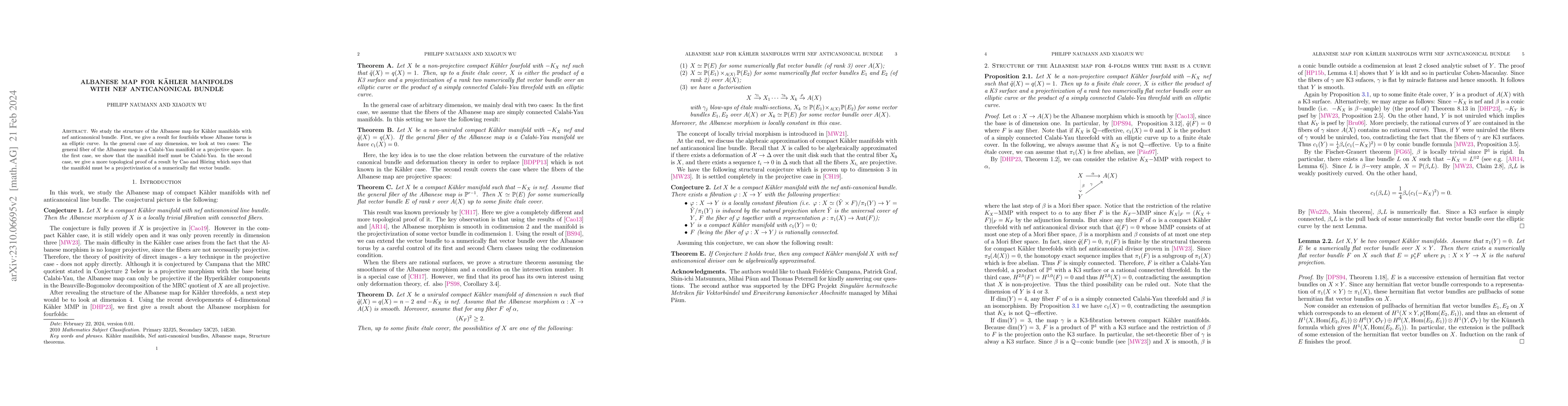This paper investigates the Albanese map for Kähler manifolds with a nef anticanonical bundle, proving that fourfolds with an elliptic Albanese torus fit specific structural criteria. For higher dimensions, it analyzes two cases: when the Albanese map's fiber is Calabi-Yau or projective space, showing the manifold must be Calabi-Yau or a projectivization of a numerically flat vector bundle, respectively.