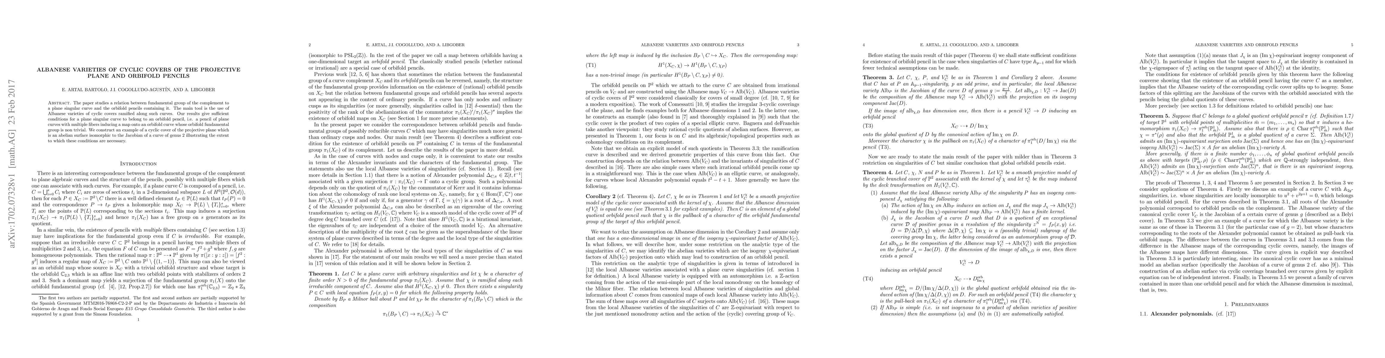 The paper explores the connection between the fundamental group of a plane singular curve's complement and orbifold pencils, using the Albanese varieties of cyclic covers. It establishes sufficient conditions for a singular curve to belong to an orbifold pencil and provides a specific example of a cyclic cover illustrating the necessity of these conditions.