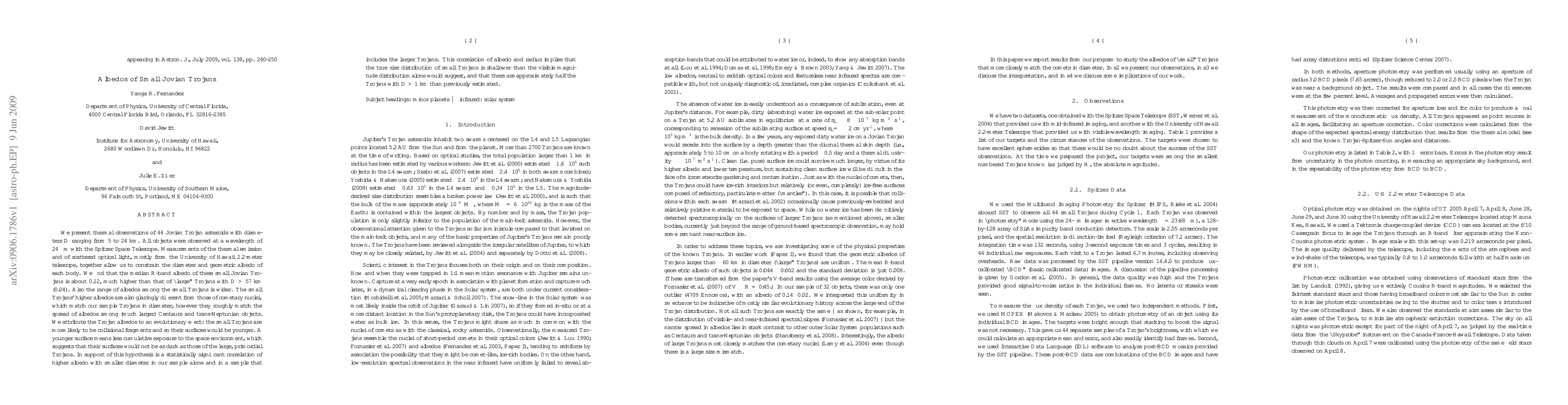 This study uses Spitzer Space Telescope and University of Hawaii telescope observations to determine the thermal emission and optical light of 44 small Jovian Trojan asteroids, finding their median R-band albedo to be 0.12, significantly higher than larger Trojans. The higher albedo of smaller Trojans is attributed to their younger, less space-weathered surfaces.