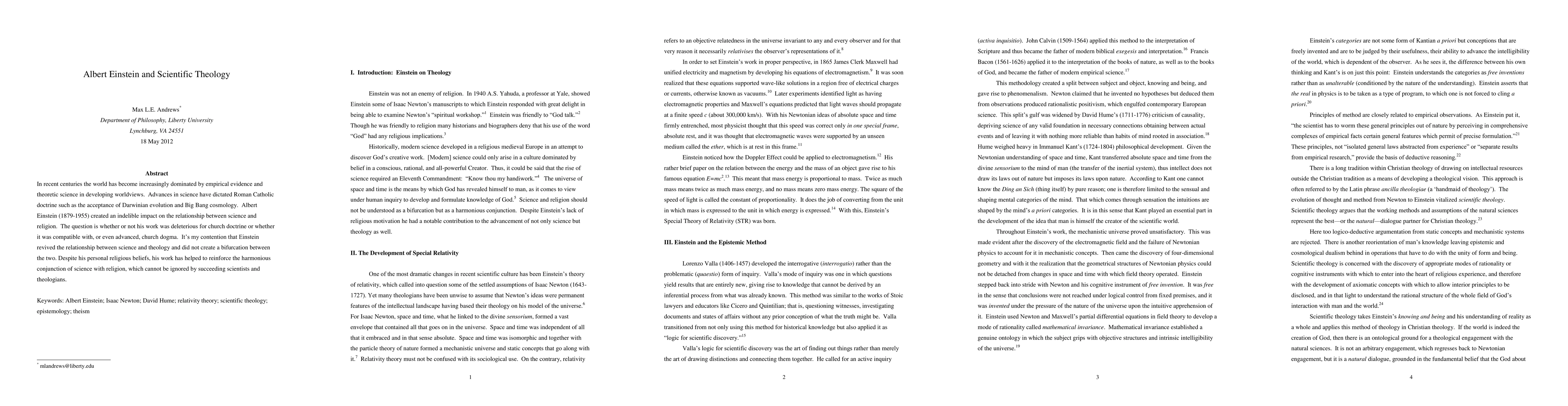 This paper explores how Albert Einstein's scientific contributions influenced the relationship between science and religion, arguing that his work did not create a rift but rather reinforced the harmonious conjunction of science and theology, impacting Roman Catholic doctrine and future scientific and theological discussions.