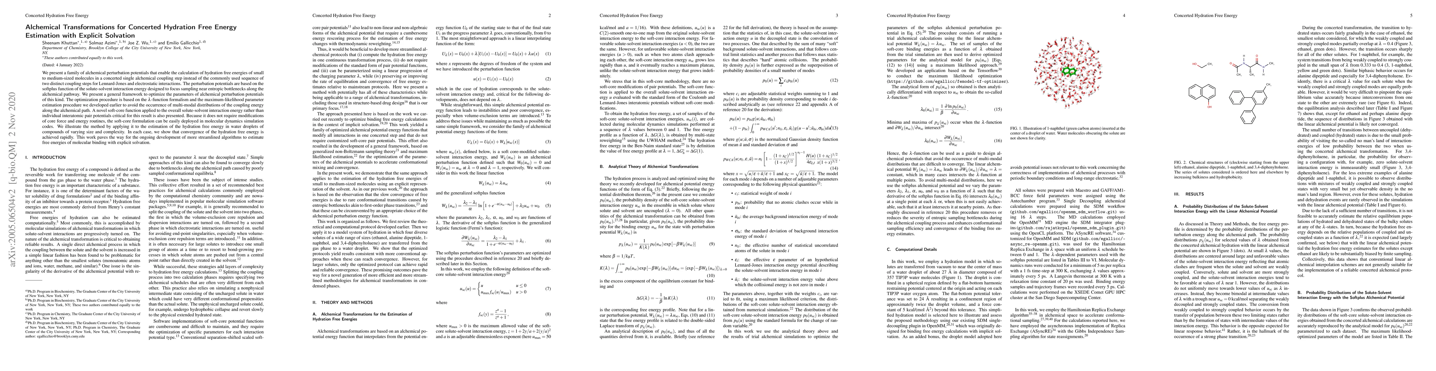 The paper presents a novel soft-core function and an optimization framework for alchemical perturbation potentials, enabling concerted hydration free energy calculations with explicit solvation.