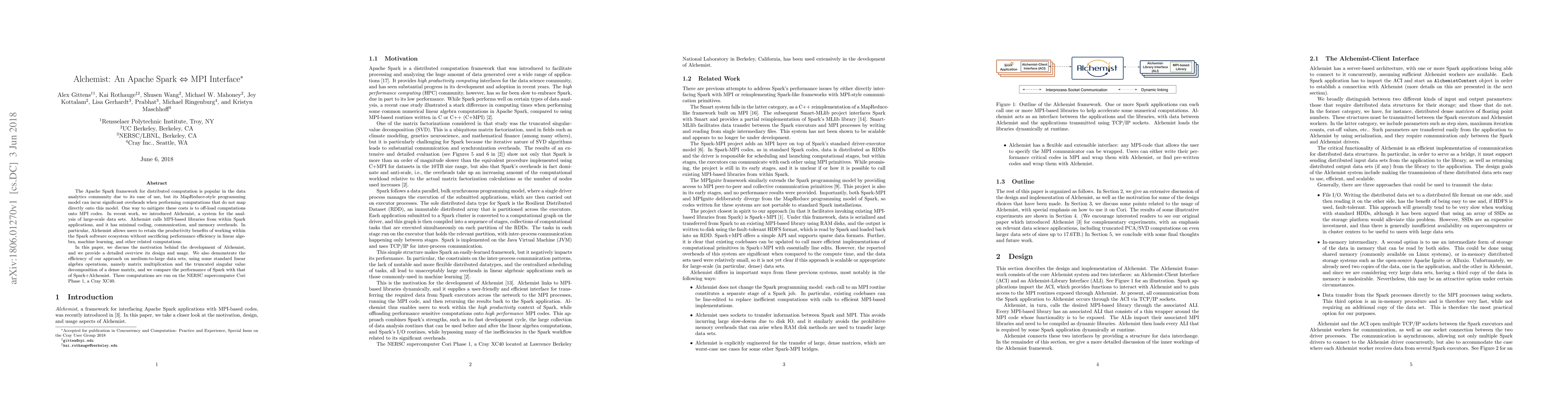 Alchemist is an interface that allows Apache Spark applications to call MPI-based libraries, minimizing overheads and enabling efficient performance for linear algebra and machine learning tasks. The paper discusses its design, usage, and demonstrates its efficiency compared to pure Spark on large-scale data sets.