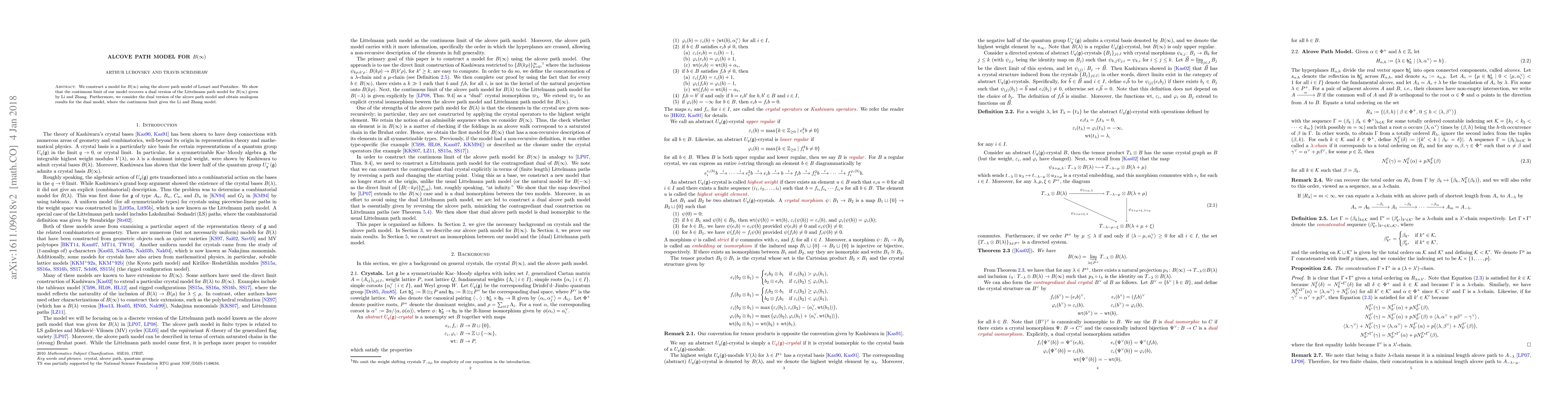 This paper constructs an alcove path model for $B(\infty)$ and demonstrates its continuous limit recovers a dual version of the Littelmann path model by Li and Zhang. It also explores the dual alcove path model, showing its continuous limit yields the Li and Zhang model.