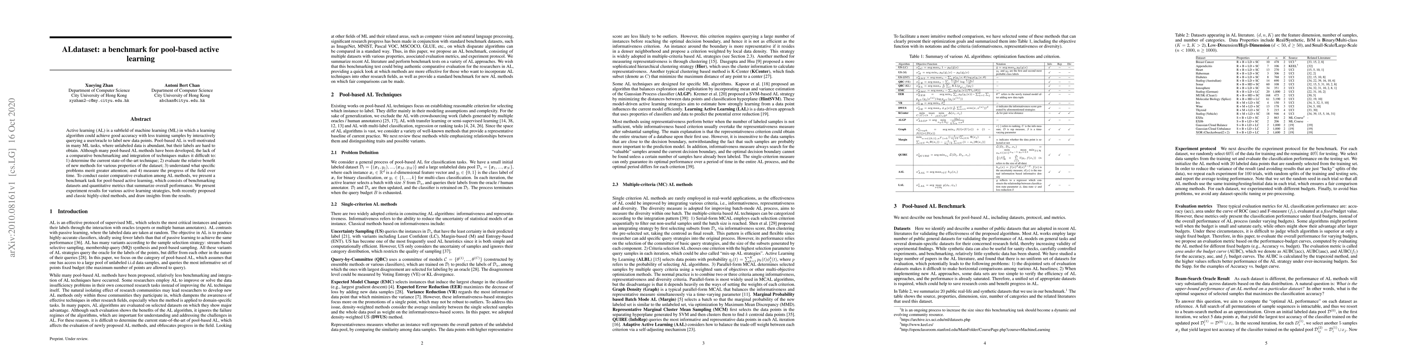 The paper introduces ALdataset, a benchmark for evaluating pool-based active learning methods, aiming to facilitate comparative analysis and progress measurement in the field. The benchmark includes datasets and metrics to assess performance, and results from various AL strategies are presented to provide insights.