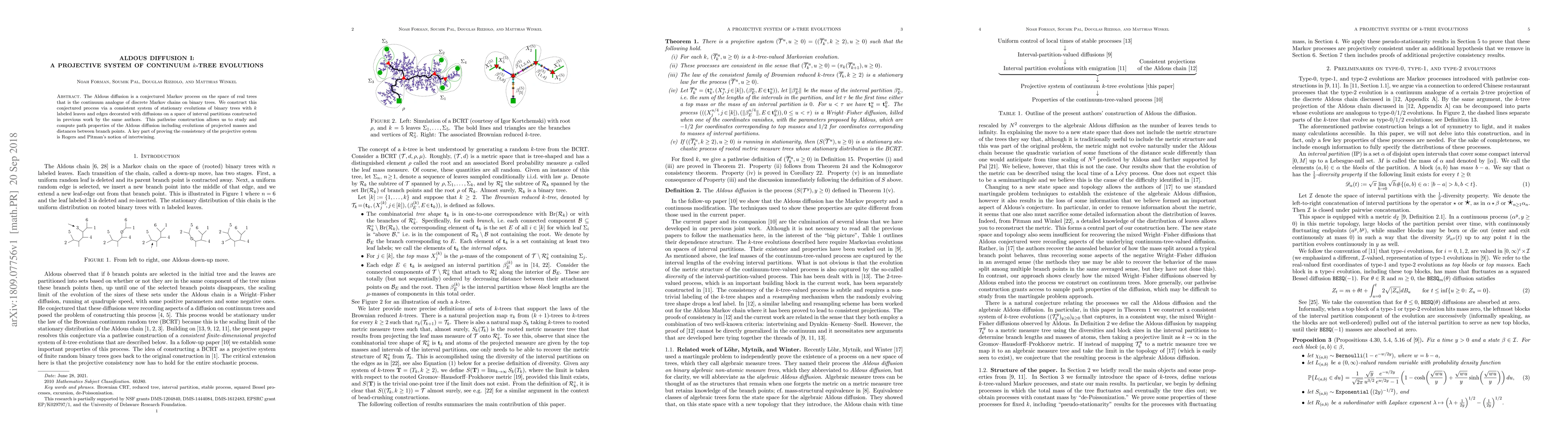 The Aldous diffusion is a conjectured continuum analogue of Markov chains on binary trees, constructed via a projective system of evolving binary trees with labeled leaves. This construction allows for the study of path properties, utilizing intertwining techniques to prove consistency.