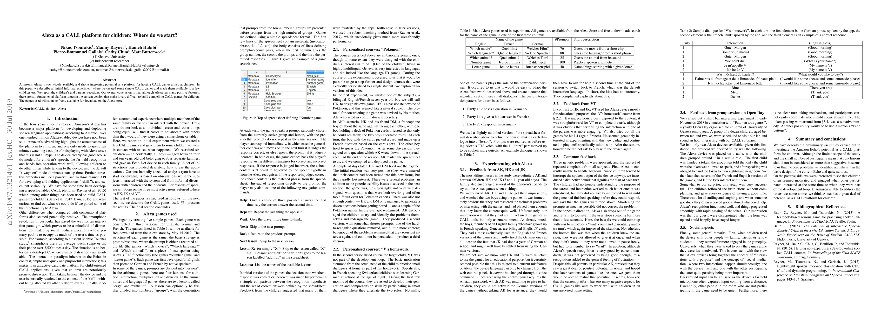 Amazon's Alexa is now widely available and shows interesting potential as a platform for hosting CALL games aimed at children. In this paper, we describe an initial informal experiment where we created some simple CALL games and made them available to a few child testers. We report the children's and parents' reactions. Our overall conclusion is that, although Alexa has many positive features, there are still fundamental platform issues in the current version that make it very difficult to build compelling CALL games for children. The games used will soon be freely available for download on the Alexa store.