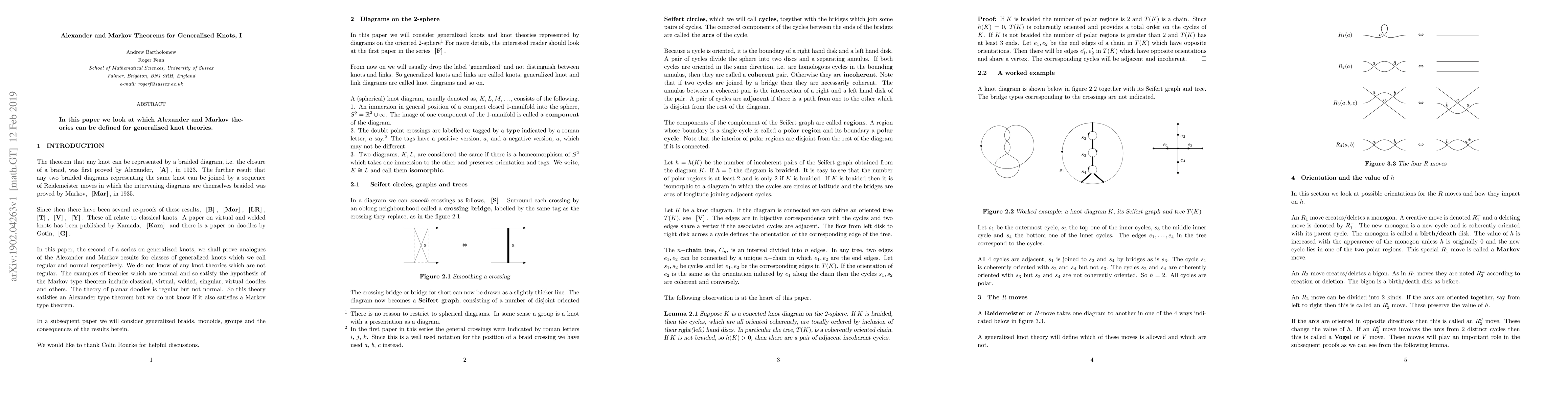 In this paper we look at which Alexander and Markov theories can be defined for generalized knot theories