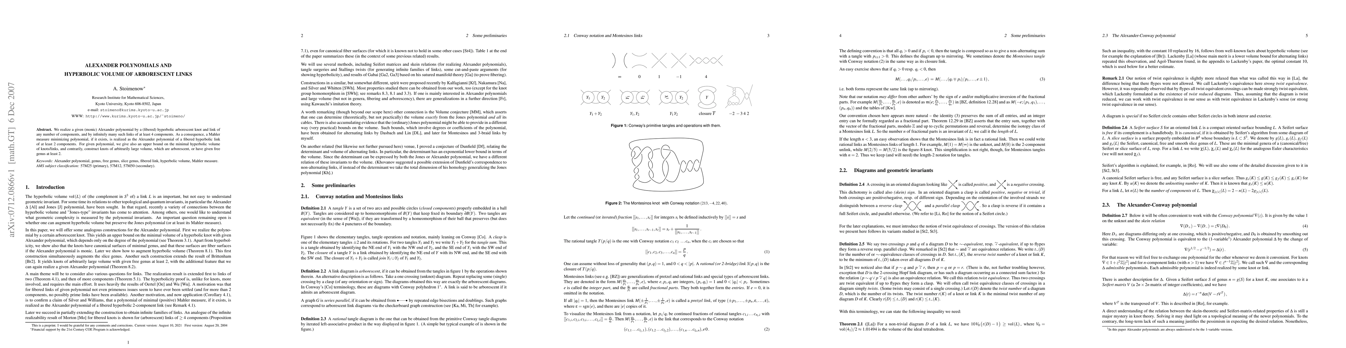 We realize a given (monic) Alexander polynomial by a (fibered) hyperbolic arborescent knot and link of any number of components, and by infinitely many such links of at least 4 components. As a consequence, a Mahler measure minimizing polynomial, if it exists, is realized as the Alexander polynomial of a fibered hyperbolic link of at least 2 components. For given polynomial, we give also an upper bound on the minimal hyperbolic volume of knots/links, and contrarily, construct knots of arbitrarily large volume, which are arborescent, or have given free genus at least 2.