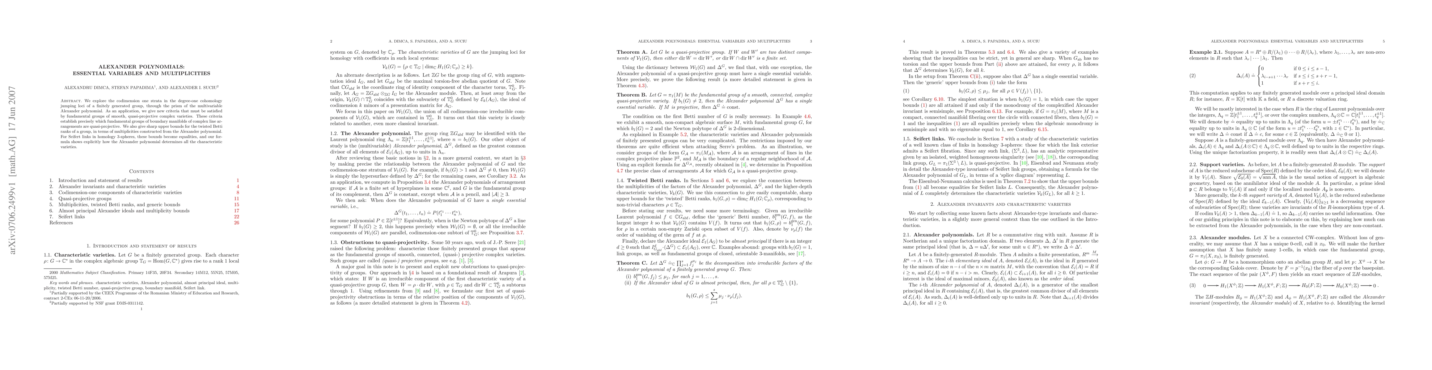 This paper investigates codimension one strata in degree-one cohomology loci of finitely generated groups via the multivariable Alexander polynomial, providing criteria for quasi-projectivity of fundamental groups of complex varieties and sharp bounds for twisted Betti ranks, with equalities for Seifert links in homology 3-spheres.