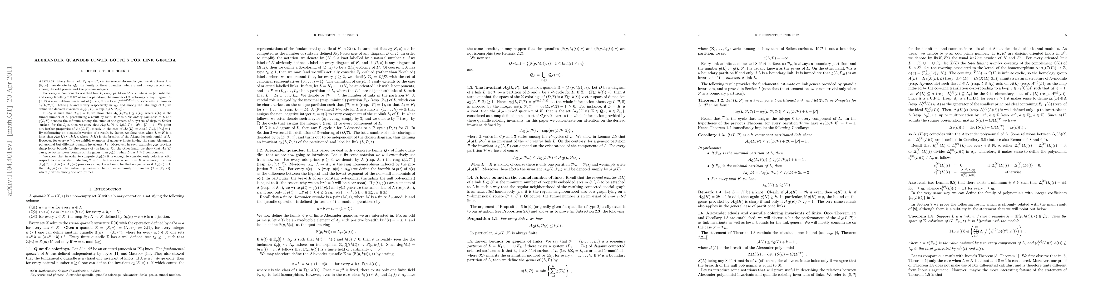 We denote by Q_F the family of the Alexander quandle structures supported by finite fields. For every k-component oriented link L, every partition P of L into h:=|P| sublinks, and every labelling z of such a partition by the natural numbers z_1,...,z_n, the number of X-colorings of any diagram of (L,z) is a well-defined invariant of (L,P), of the form q^(a_X(L,P,z)+1) for some natural number a_X(L,P,z). Letting X and z vary in Q_F and among the labellings of P, we define a derived invariant A_Q(L,P)=sup a_X(L,P,z). If P_M is such that |P_M|=k, we show that A_Q(L,P_M) is a lower bound for t(L), where t(L) is the tunnel number of L. If P is a "boundary partition" of L and g(L,P) denotes the infimum among the sums of the genera of a system of disjoint Seifert surfaces for the L_j's, then we show that A_Q(L,P) is at most 2g(L,P)+2k-|P|-1. We set A_Q(L):=A_Q(L,P_m), where |P_m|=1. By elaborating on a suitable version of a result by Inoue, we show that when L=K is a knot then A_Q(K) is bounded above by A(K), where A(K) is the breadth of the Alexander polynomial of K. However, for every g we exhibit examples of genus-g knots having the same Alexander polynomial but different quandle invariants A_Q. Moreover, in such examples A_Q provides sharp lower bounds for the genera of the knots. On the other hand, A_Q(L) can give better lower bounds on the genus than A(L), when L has at least two components. We show that in order to compute A_Q(L) it is enough to consider only colorings with respect to the constant labelling z=1. In the case when L=K is a knot, if either A_Q(K)=A(K) or A_Q(K) provides a sharp lower bound for the knot genus, or if A_Q(K)=1, then A_Q(K) can be realized by means of the proper subfamily of quandles X=(F_p,*), where p varies among the odd prime numbers.