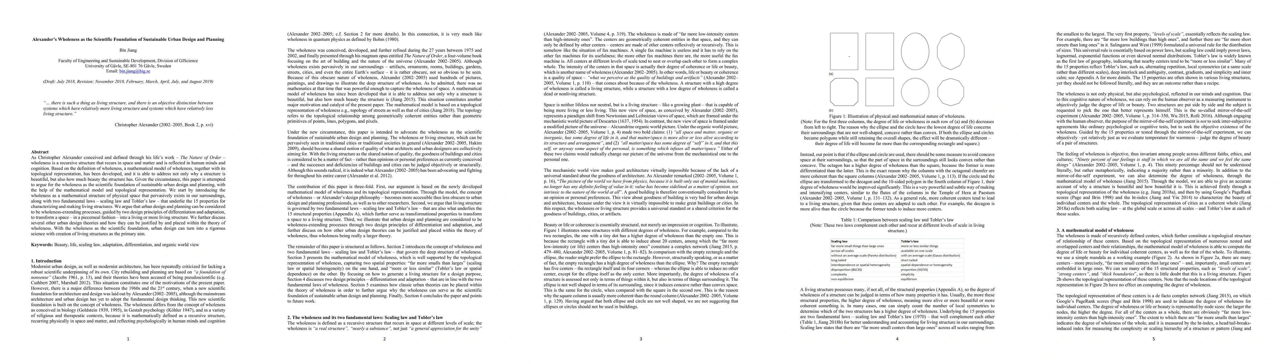 This paper argues that Christopher Alexander's concept of wholeness, defined through his work "The Nature of Order," serves as a scientific foundation for sustainable urban design and planning. It introduces a mathematical model of wholeness to quantify beauty in structures and discusses how urban design can be guided by principles of differentiation and adaptation to create living spaces.