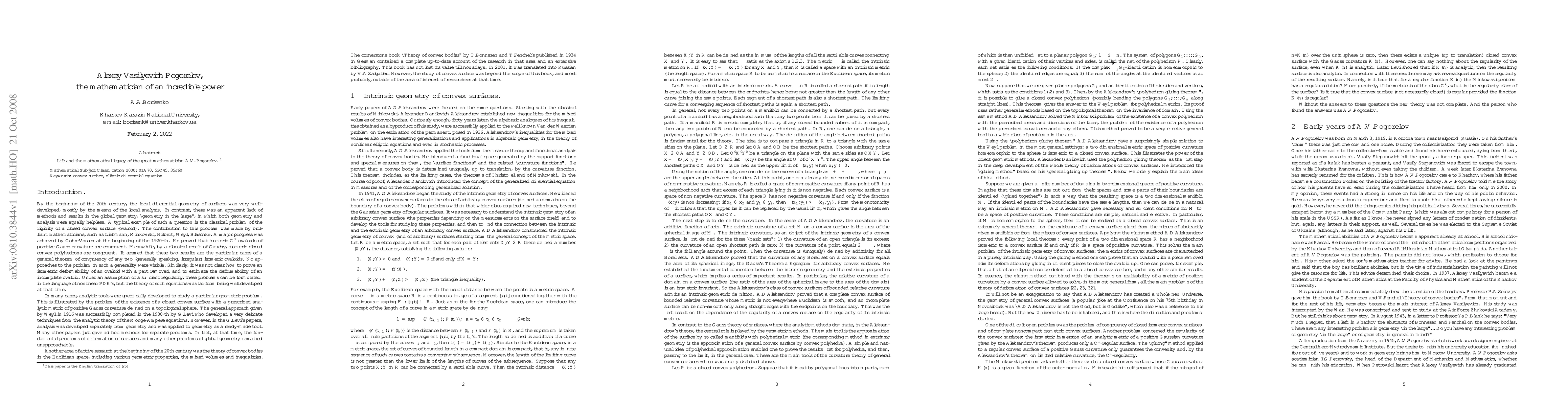The paper provides an in-depth look at Pogorelov's work, shedding light on his remarkable achievements and cementing his legacy as a prominent figure in mathematics.