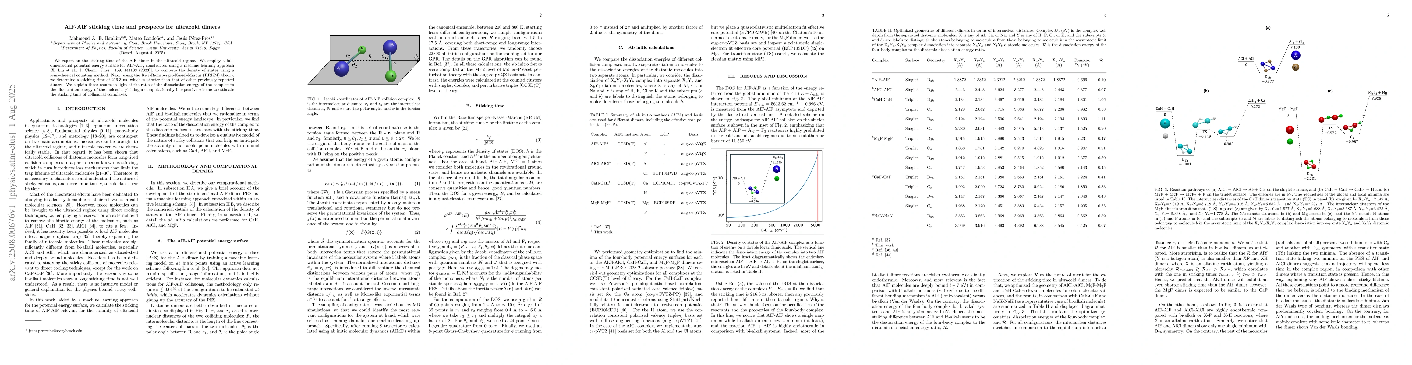 We report on the sticking time of the AlF dimer in the ultracold regime. We employ a full-dimensional potential energy surface for AlF-AlF, constructed using a machine learning approach [X. Liu et al., J. Chem. Phys. 159, 144103 (2023)], to compute the density of states using a semi-classical counting method. Next, using the Rice-Ramsperger-Kassel-Marcus (RRKM) theory, we determine a sticking time of 216.3 ns, which is shorter than that of other previously reported dimers. We explain these results in light of the ratio of the dissociation energy of the complex to the dissociation energy of the molecule, yielding a computationally inexpensive scheme to estimate the sticking time of collisional complexes.