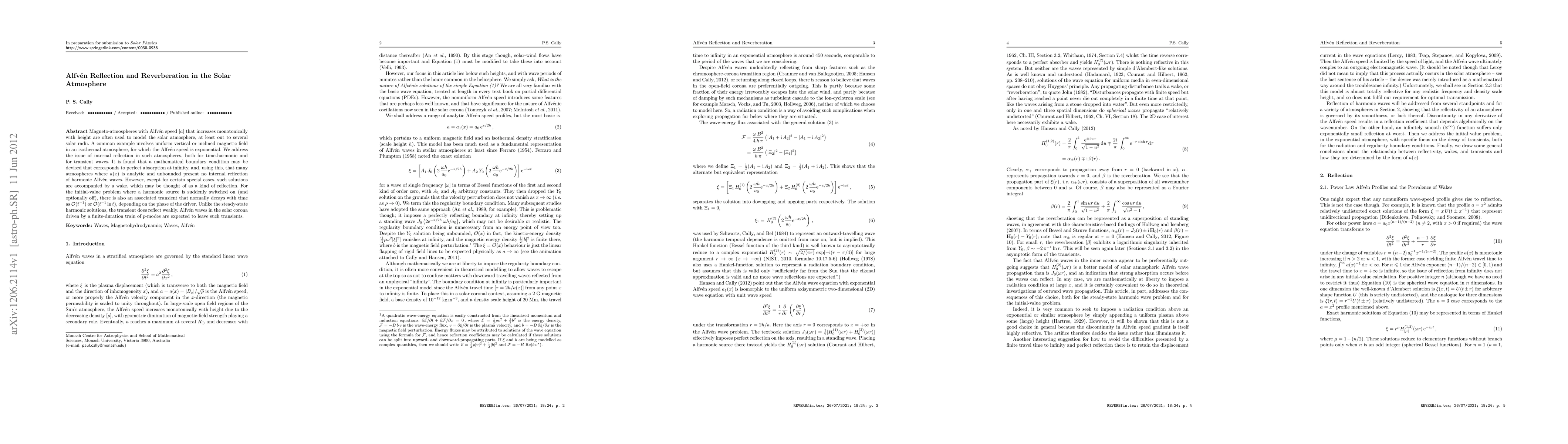 This paper investigates Alfv\'en wave reflection and reverberation in solar atmospheres with increasing Alfv\'en speed. It finds that while harmonic Alfv\'en waves generally do not reflect internally, transient waves do reflect weakly, leaving a decaying wake that behaves as a transient reverberation.
