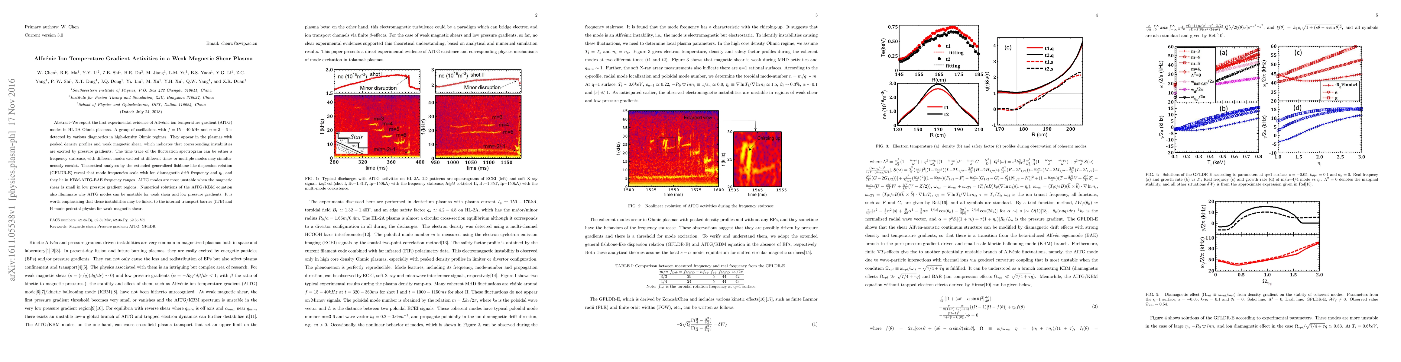 This research presents the first experimental evidence of Alfvenic ion temperature gradient (AITG) modes in HL-2A Ohmic plasmas, detected via various diagnostics in high-density regimes with peaked density profiles and weak magnetic shear. Theoretical analyses and numerical solutions support the instability of these modes for weak shear and low pressure gradients, suggesting a potential link to internal transport barrier (ITB) and H-mode pedestal physics.
