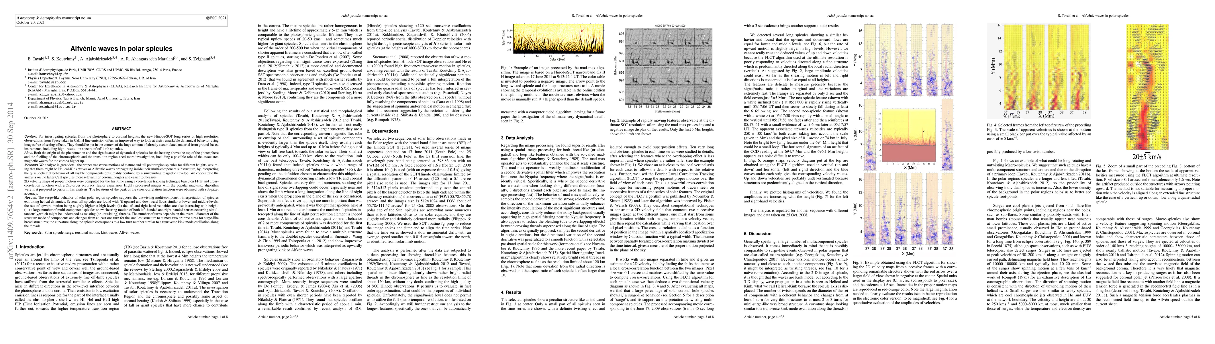 Context. For investigating spicules from the photosphere to coronal heights, the new Hinode/SOT long series of high resolution observations from Space taken in CaII H line emission offers an improved way to look at their remarkable dynamical behavior using images free of seeing effects. They should be put in the context of the huge amount of already accumulated material from ground-based instruments, including high- resolution spectra of off-limb spicules. Results. The surge-like behavior of solar polar region spicules supports the untwisting multi-component interpretation of spicules exhibiting helical dynamics. Several tall spicules are found with (i) upward and downward flows similar at lower and middle-levels, the rate of upward motion being slightly higher at high levels; (ii) the left and right-hand velocities are also increasing with height; (iii) a large number of multi-component spicules show shearing motion of both left-handed and right-handed senses occurring simultaneously, which might be understood as twisting (or untwisting) threads. The number of turns depends on the overall diameter of the structure made of components and changes from at least one turn for the smallest structure to at most two or three turns for surge-like broad structures; the curvature along the spicule corresponds to a low turn number similar to a transverse kink mode oscillation along the threads.