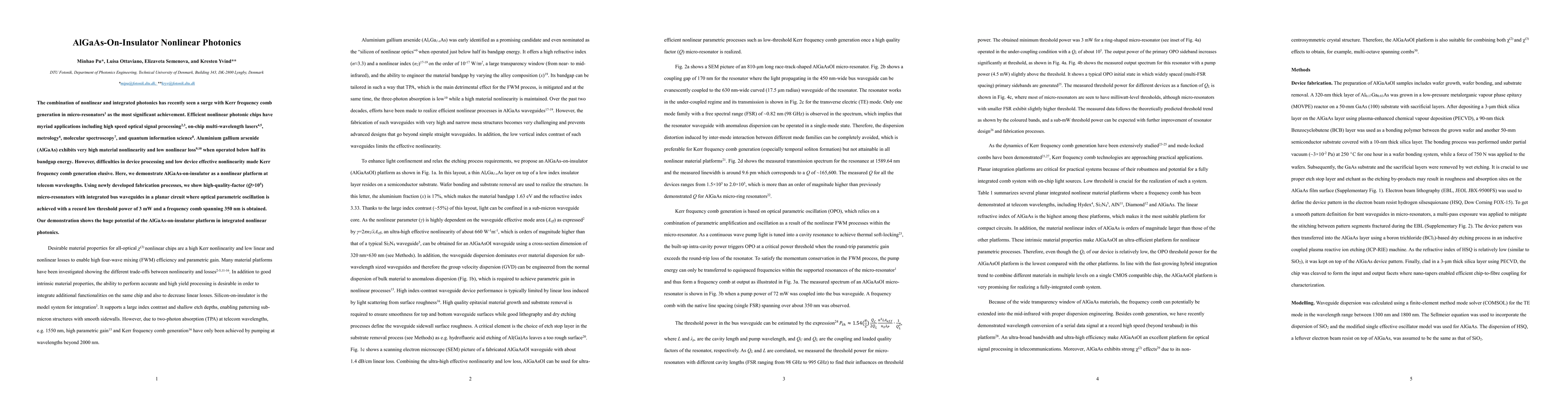 This paper demonstrates AlGaAs-on-insulator as a highly efficient nonlinear photonic platform for telecom wavelengths, achieving optical parametric oscillation with a record low threshold power of 3 mW and high-quality-factor micro-resonators, indicating significant potential for integrated photonic applications.