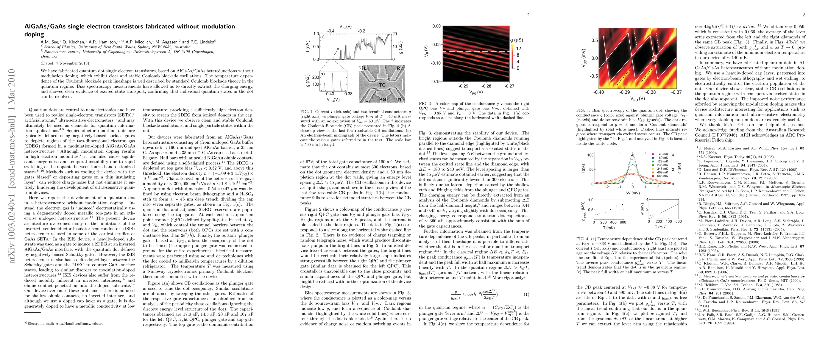 This study reports the fabrication of AlGaAs/GaAs single electron transistors without modulation doping, showing stable Coulomb blockade oscillations. Measurements confirm individual quantum states' resolution and align with Coulomb blockade theory.