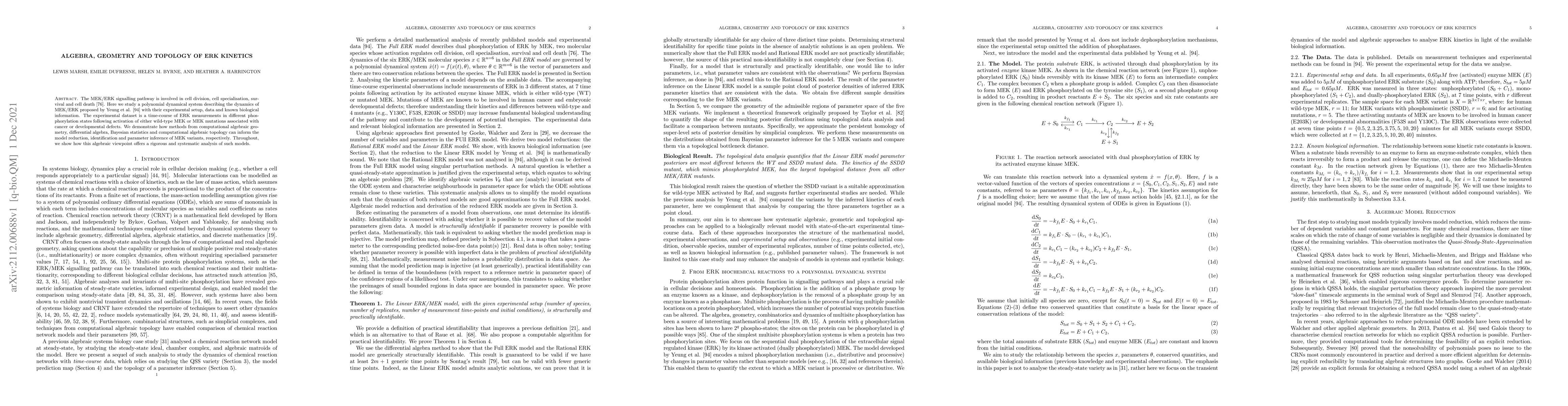 This paper employs computational algebraic geometry, differential algebra, Bayesian statistics, and algebraic topology to analyze the MEK/ERK signalling pathway dynamics, focusing on MEK variants linked to cancer or developmental defects. The study rigorously reduces and identifies MEK models using these advanced mathematical methods.