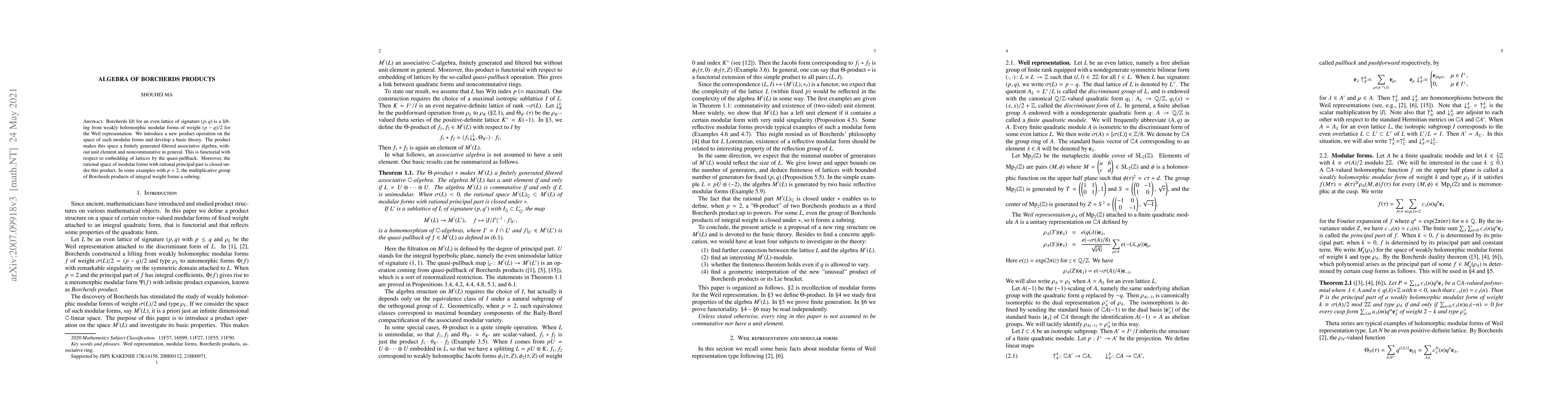 The paper introduces a new associative algebra structure on modular forms using a Borcherds product, which is noncommutative and lacks a unit element, and demonstrates its functoriality and closure properties for rational forms. In specific cases, it shows that the multiplicative group of Borcherds products can form a subring.