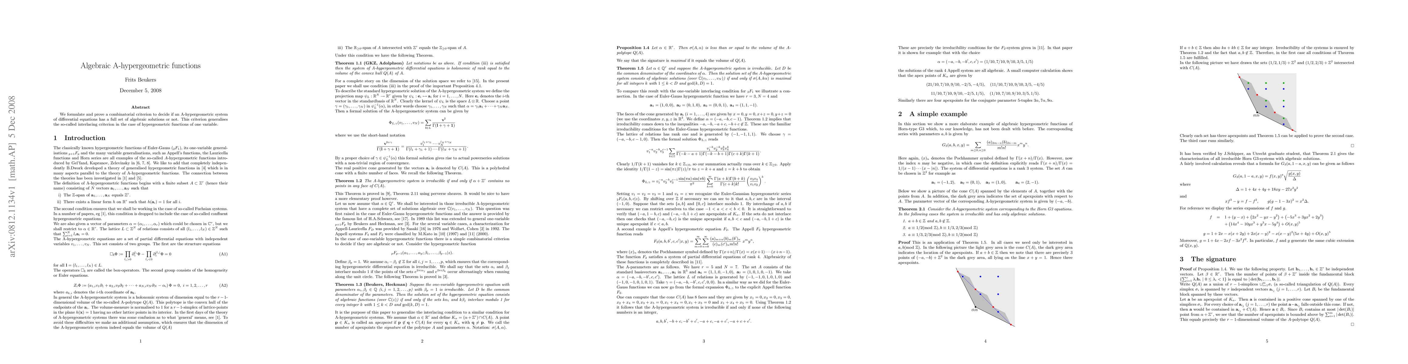 We formulate and prove a combinatorial criterion to decide if an A-hypergeometric system of differential equations has a full set of algebraic solutions or not. This criterion generalises the so-called interlacing criterion in the case of hypergeometric functions of one variable.