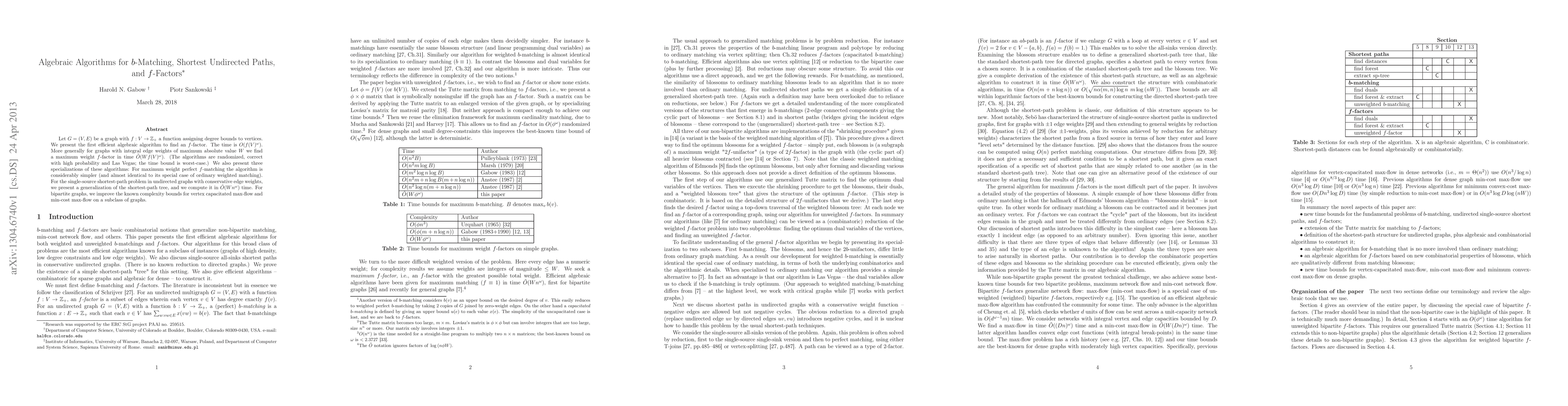 Let G=(V,E) be a graph with f:V\to Z_+ a function assigning degree bounds to vertices. We present the first efficient algebraic algorithm to find an f-factor. The time is \tilde{O}(f(V)^{\omega}). More generally for graphs with integral edge weights of maximum absolute value W we find a maximum weight f-factor in time \tilde{O}(Wf(V)^{\omega}). (The algorithms are randomized, correct with high probability and Las Vegas; the time bound is worst-case.) We also present three specializations of these algorithms: For maximum weight perfect f-matching the algorithm is considerably simpler (and almost identical to its special case of ordinary weighted matching). For the single-source shortest-path problem in undirected graphs with conservative edge weights, we present a generalization of the shortest-path tree, and we compute it in \tilde{O(Wn^{\omega}) time. For bipartite graphs, we improve the known complexity bounds for vertex capacitated max-flow and min-cost max-flow on a subclass of graphs.