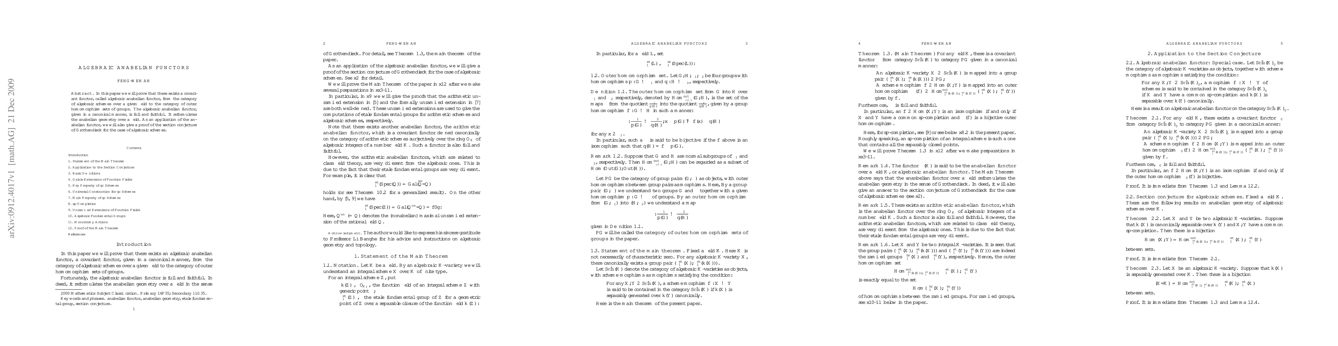 This paper establishes a covariant algebraic anabelian functor, which is a full and faithful mapping from algebraic schemes over a field to outer homomorphism sets of groups, thus reformulating anabelian geometry. It also proves the section conjecture of Grothendieck for algebraic schemes using this functor.
