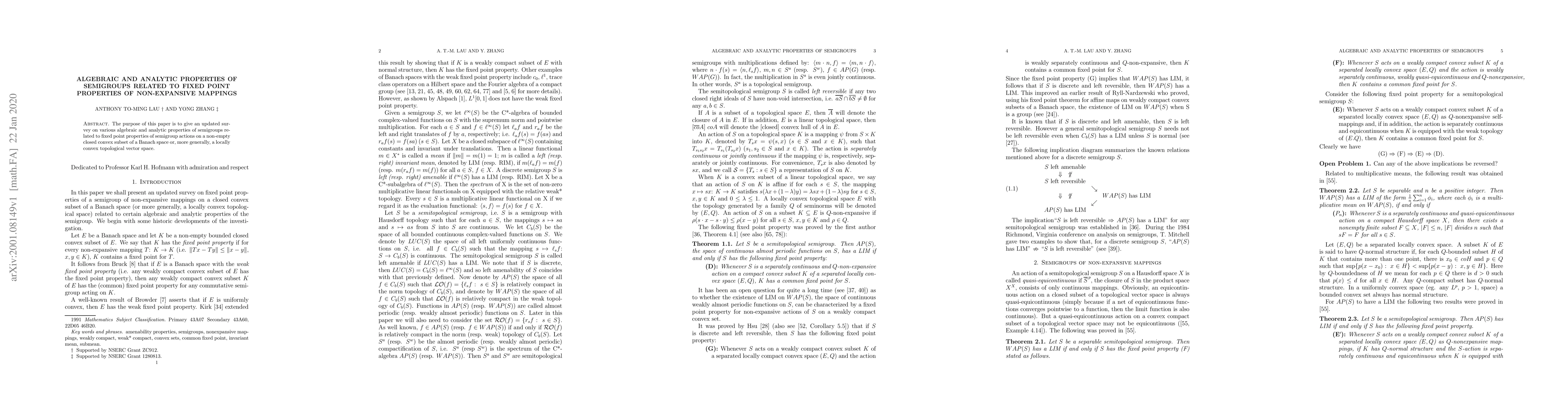 This paper surveys algebraic and analytic properties of semigroups connected to fixed point properties of non-expansive mappings in Banach spaces and locally convex topological vector spaces. It highlights the interplay between semigroup actions and fixed point theory.