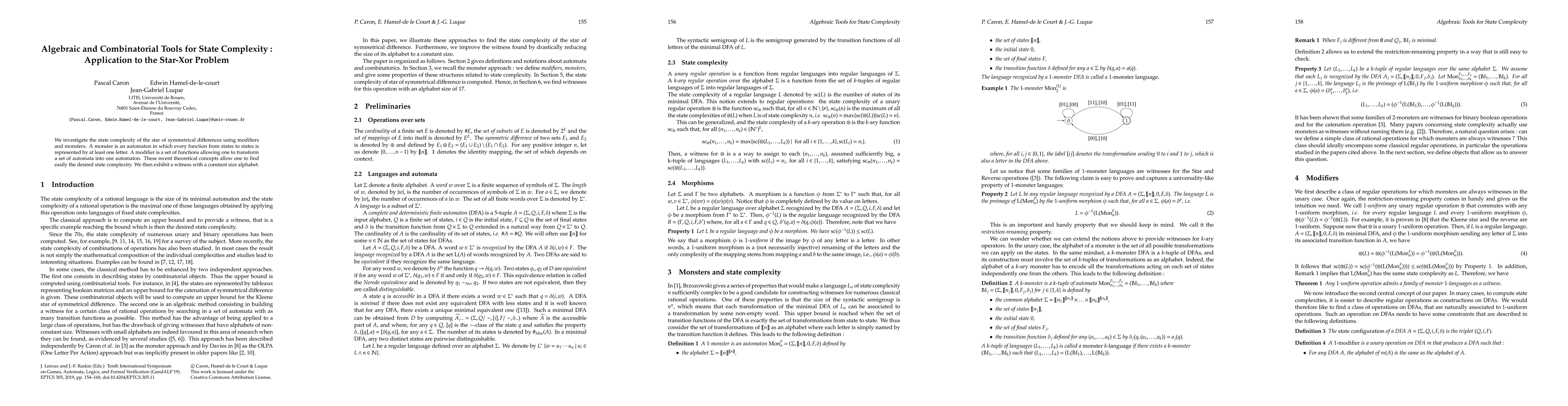 We investigate the state complexity of the star of symmetrical differences using modifiers and monsters. A monster is an automaton in which every function from states to states is represented by at least one letter. A modifier is a set of functions allowing one to transform a set of automata into one automaton. These recent theoretical concepts allow one to find easily the desired state complexity. We then exhibit a witness with a constant size alphabet.