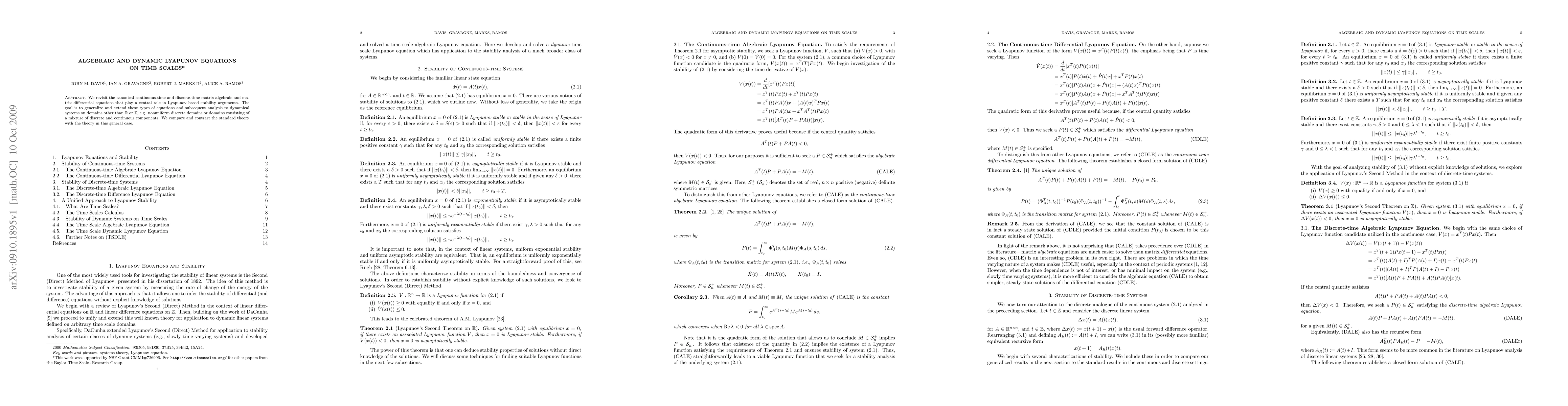 We revisit the canonical continuous-time and discrete-time matrix algebraic and matrix differential equations that play a central role in Lyapunov based stability arguments. The goal is to generalize and extend these types of equations and subsequent analysis to dynamical systems on domains other than $\R$ or $\Z$, e.g. nonuniform discrete domains or domains consisting of a mixture of discrete and continuous components. We compare and contrast the standard theory with the theory in this general case.