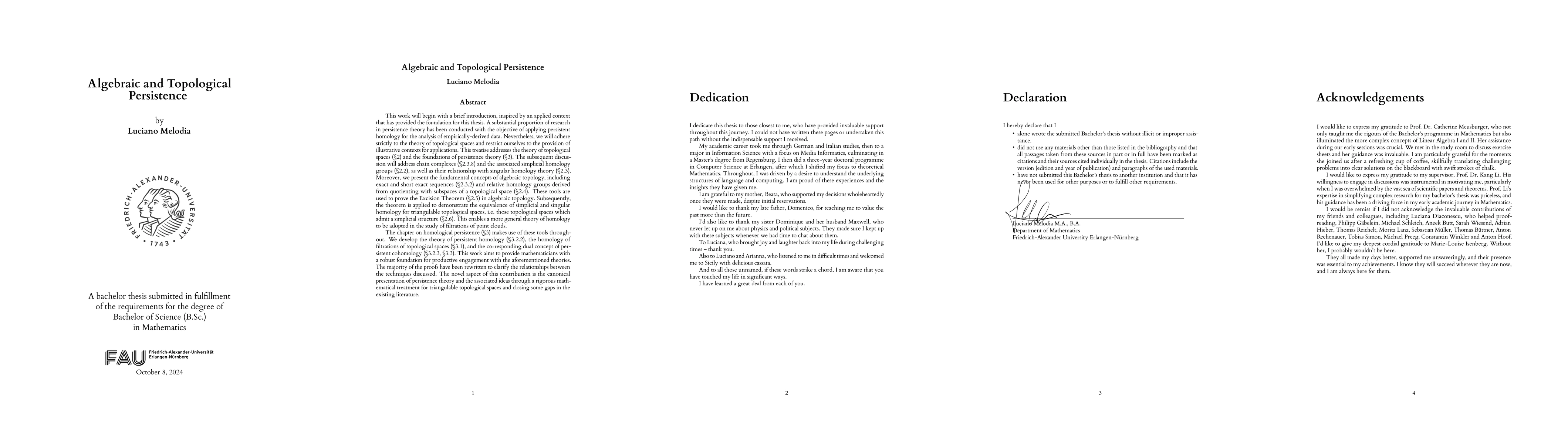 This research develops a rigorous algebraic and topological persistence theory for triangulable spaces, using tools like simplicial and singular homology, and proving the Excision Theorem. It establishes equivalence between simplicial and singular homology, providing a foundation for homological persistence in point cloud filtrations.
