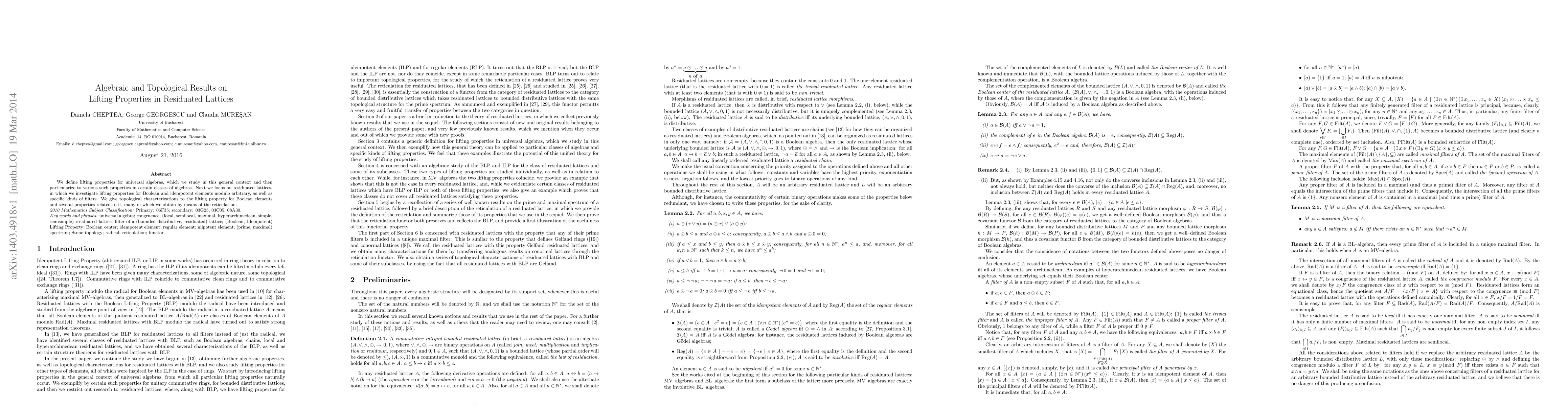 This paper defines lifting properties in universal algebras and examines them specifically within residuated lattices, focusing on Boolean and idempotent elements under different filter types. It provides topological characterizations of these properties, utilizing reticulations for several results.
