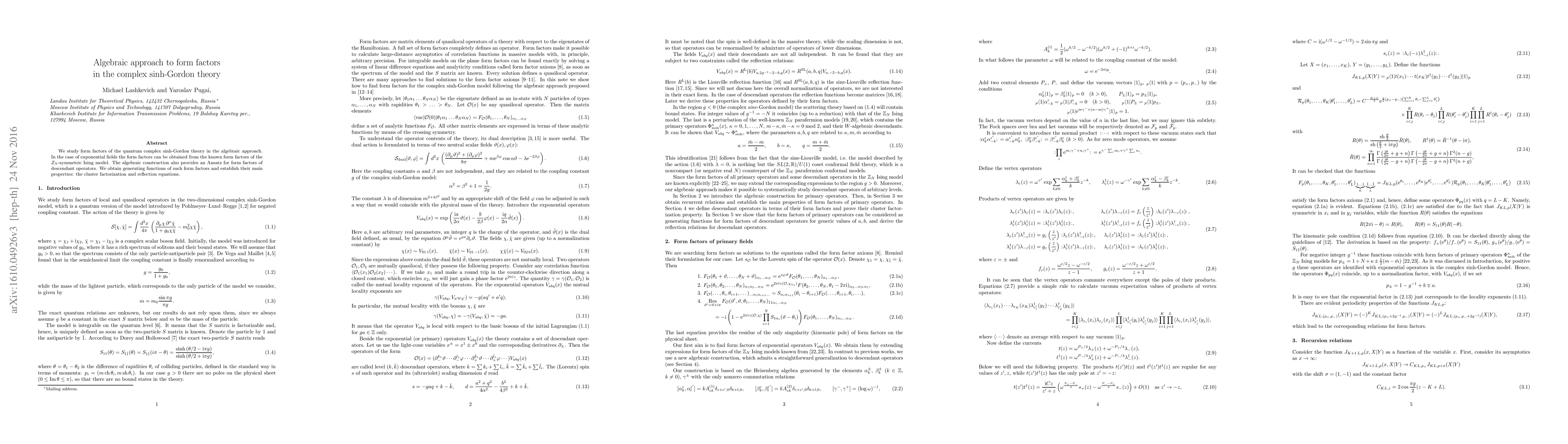 This paper explores form factors in the quantum complex sinh-Gordon theory using an algebraic approach, deriving them from the $Z_N$-symmetric Ising model and providing an Ansatz for descendant operators. It establishes generating functions and confirms their cluster factorization and reflection properties.