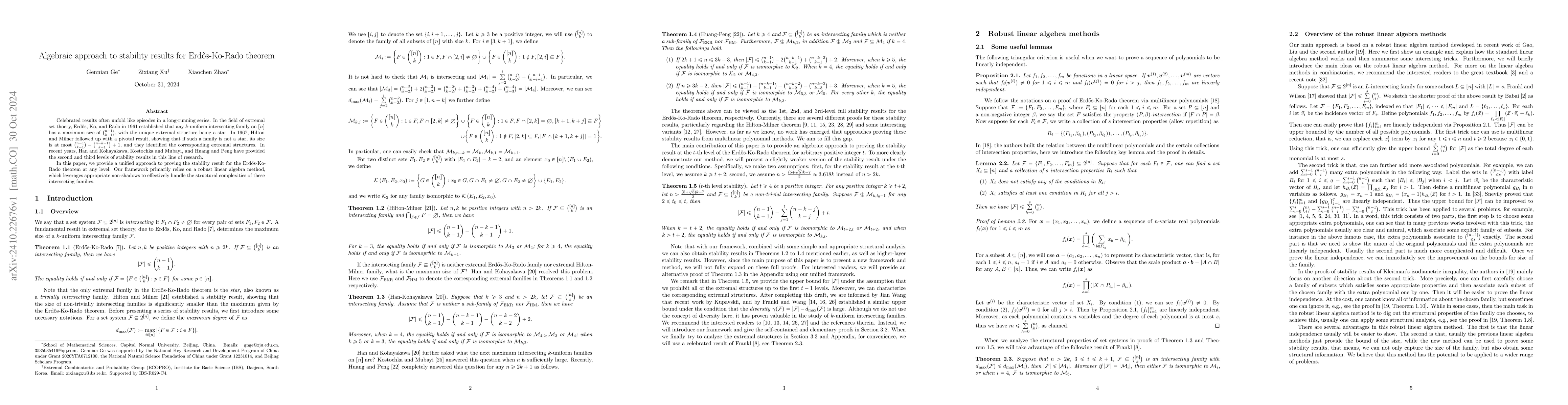 This paper presents an algebraic method for proving stability results for the Erdős-Ko-Rado theorem at any level. It utilizes linear algebra techniques and non-shadows to address the complexities of intersecting families, offering a unified approach beyond previous work.