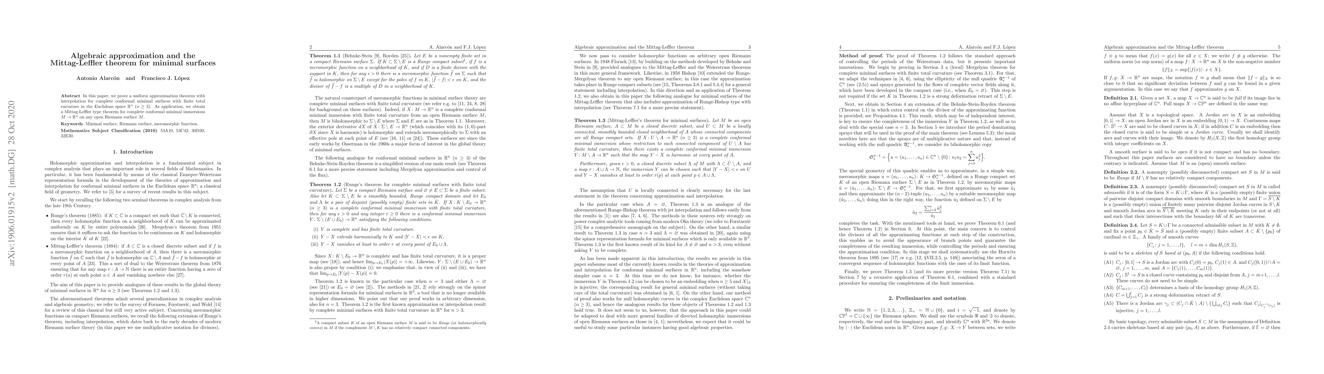 This paper proves a uniform approximation theorem for complete conformal minimal surfaces in $\mathbb{R}^n$ with finite total curvature. It also derives a Mittag-Leffler type theorem for such immersions on any open Riemann surface.