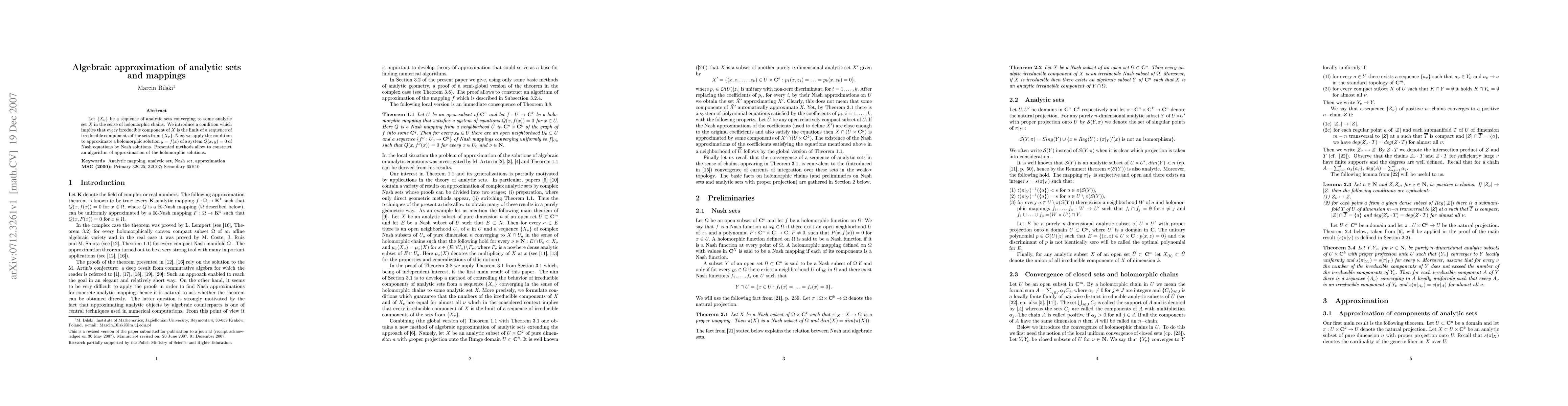 The work builds upon existing research in algebraic geometry and Nash set theory, offering a fresh perspective on approximation methods