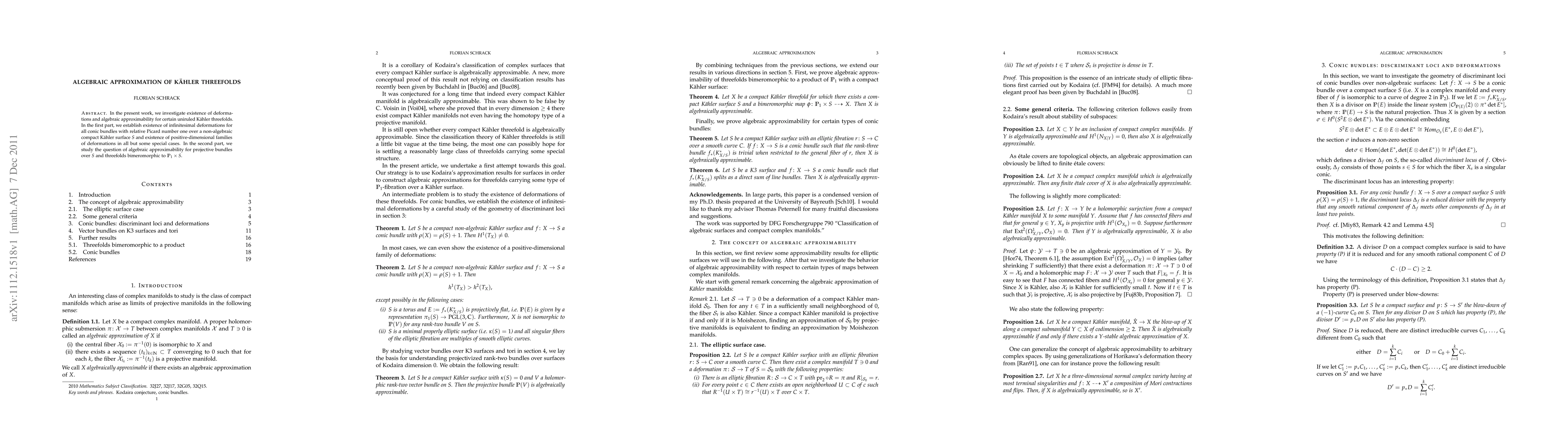 In the present work, we investigate existence of deformations and algebraic approximability for certain uniruled K\"ahler threefolds. In the first part, we establish existence of infinitesimal deformations for all conic bundles with relative Picard number one over a non-algebraic compact K\"ahler surface S and existence of positive-dimensional families of deformations in all but some special cases. In the second part, we study the question of algebraic approximability for projective bundles over S and threefolds bimeromorphic to P_1 x S.