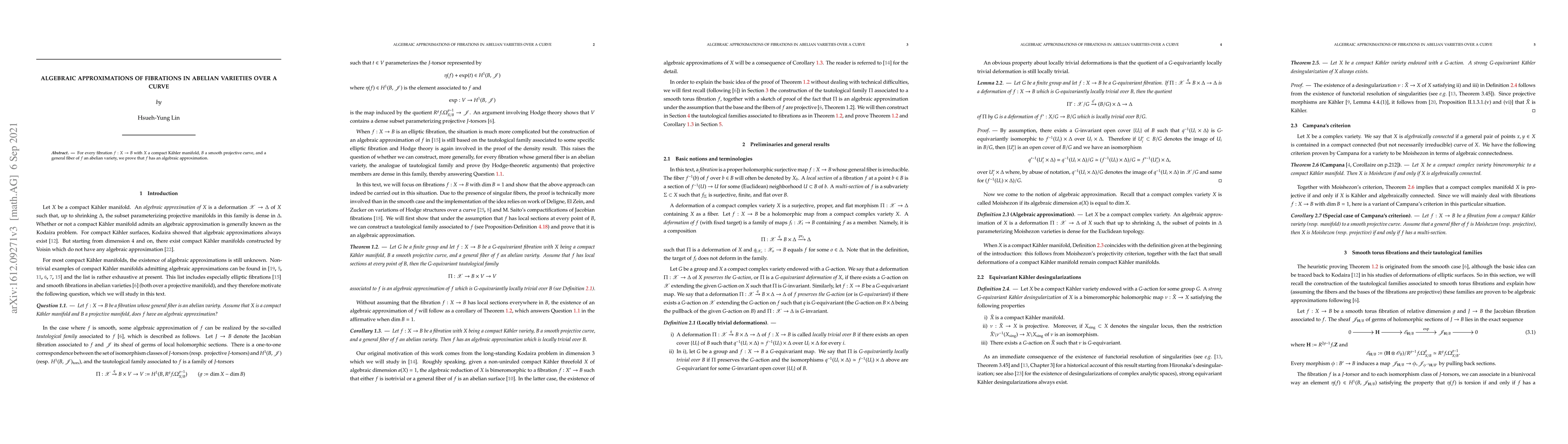 For every fibration $f : X \to B$ with $X$ a compact K\"ahler manifold, $B$ a smooth projective curve, and a general fiber of $f$ an abelian variety, we prove that $f$ has an algebraic approximation.